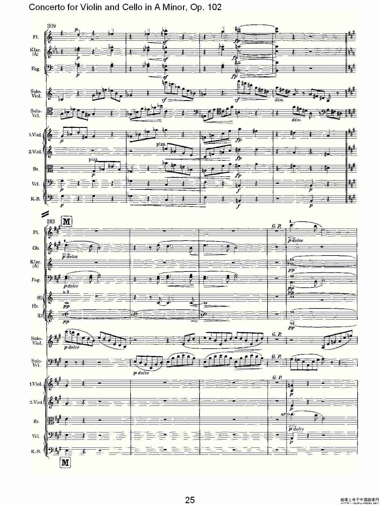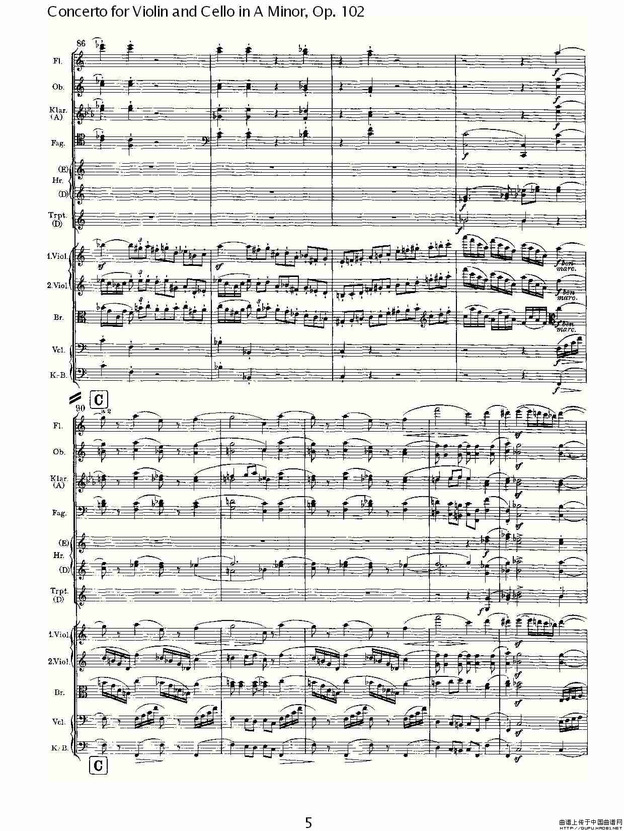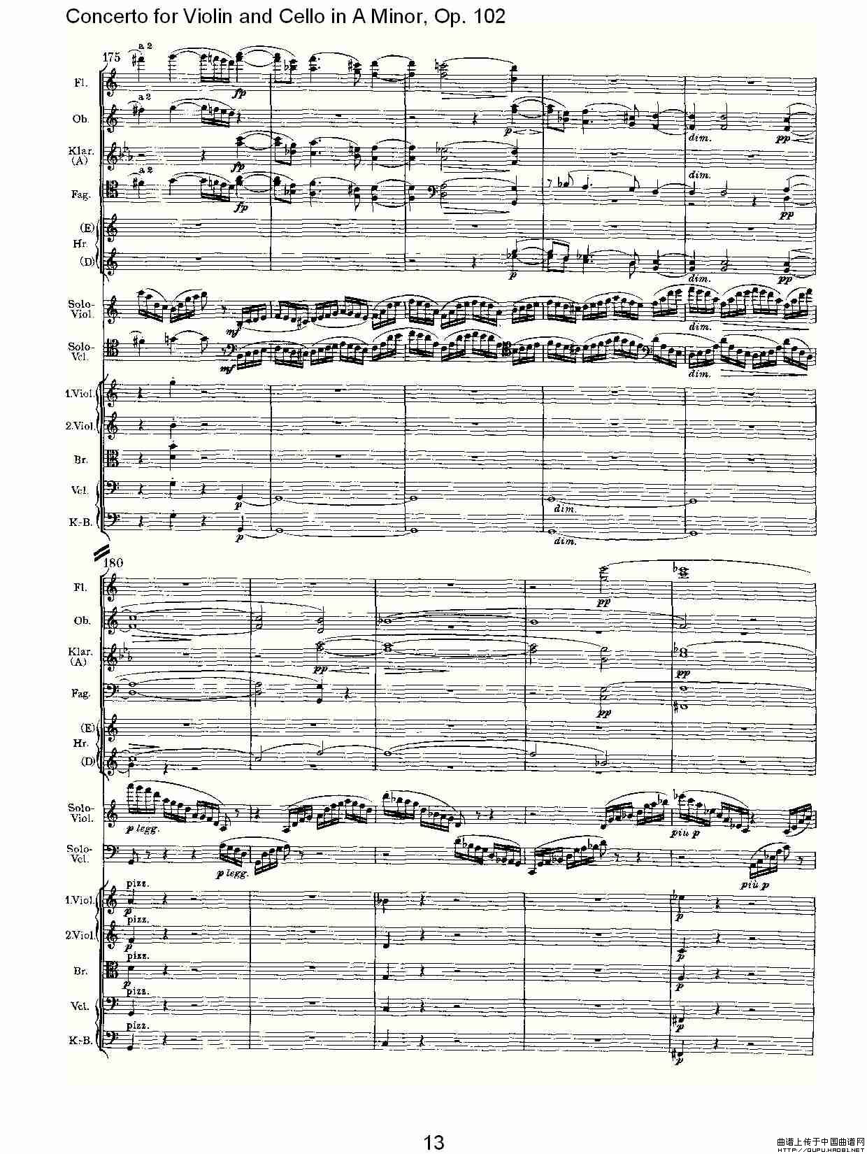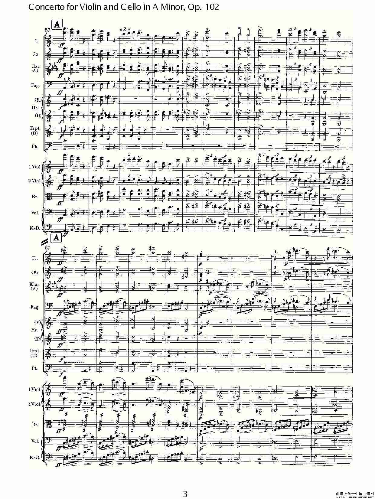 A小调小提琴与大提琴协奏曲, Op.102第一乐章相关五线谱
