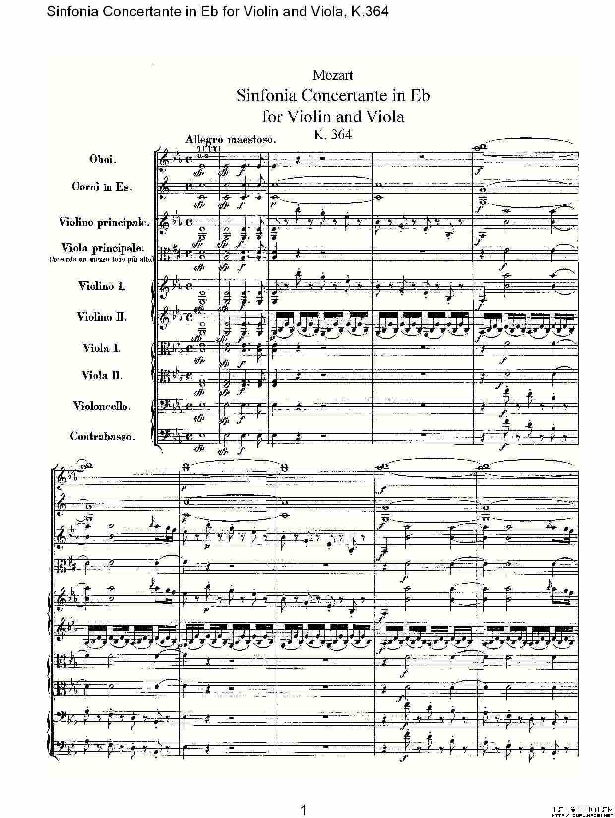 Eb调小提琴与中提琴炫技序曲, K.364(一)相关五线谱