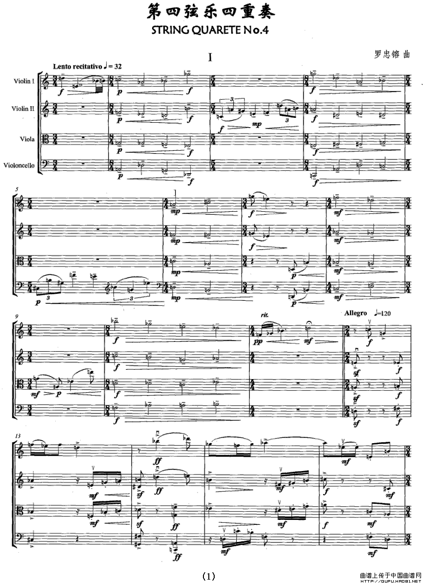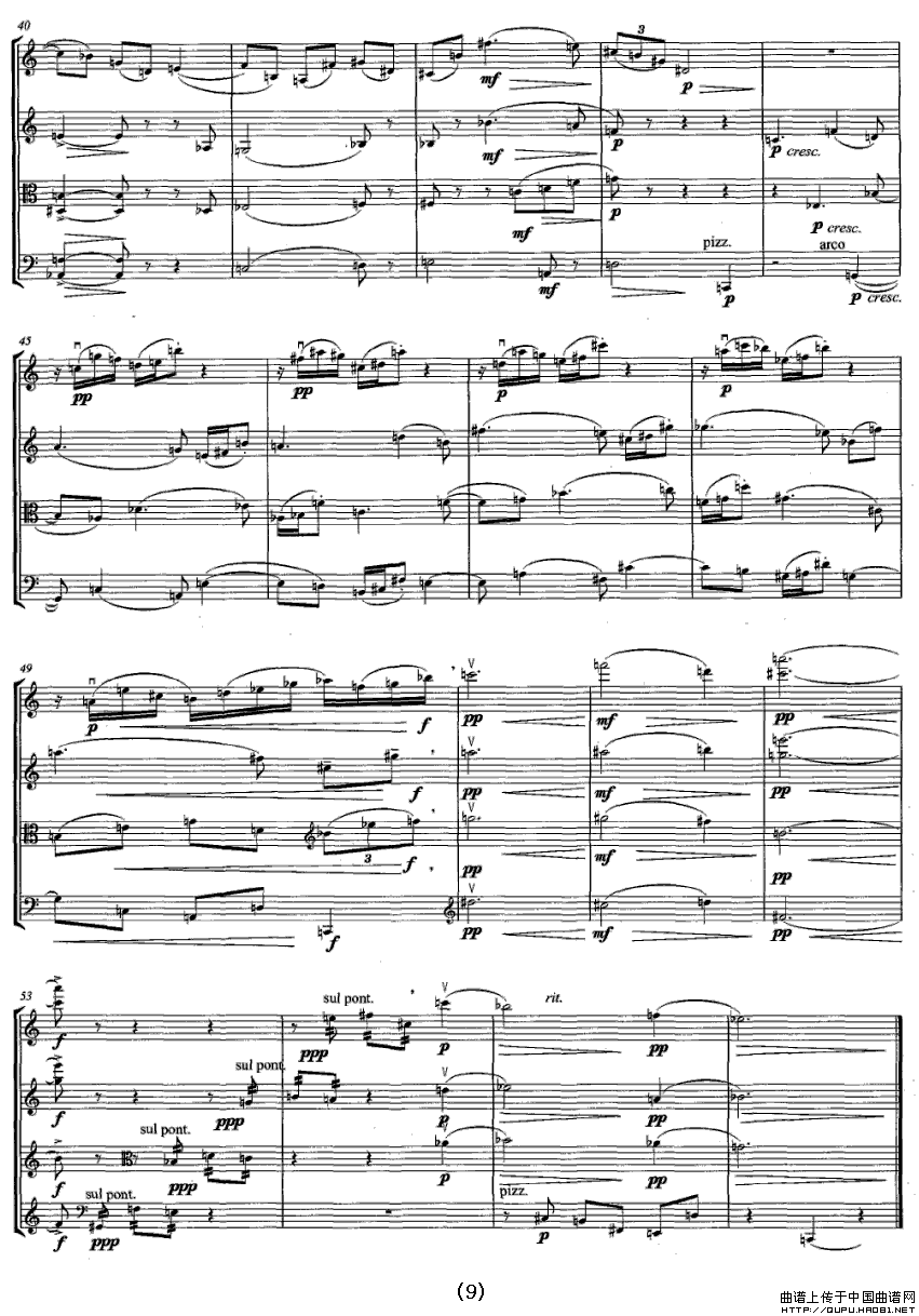 第四弦乐四重奏相关五线谱