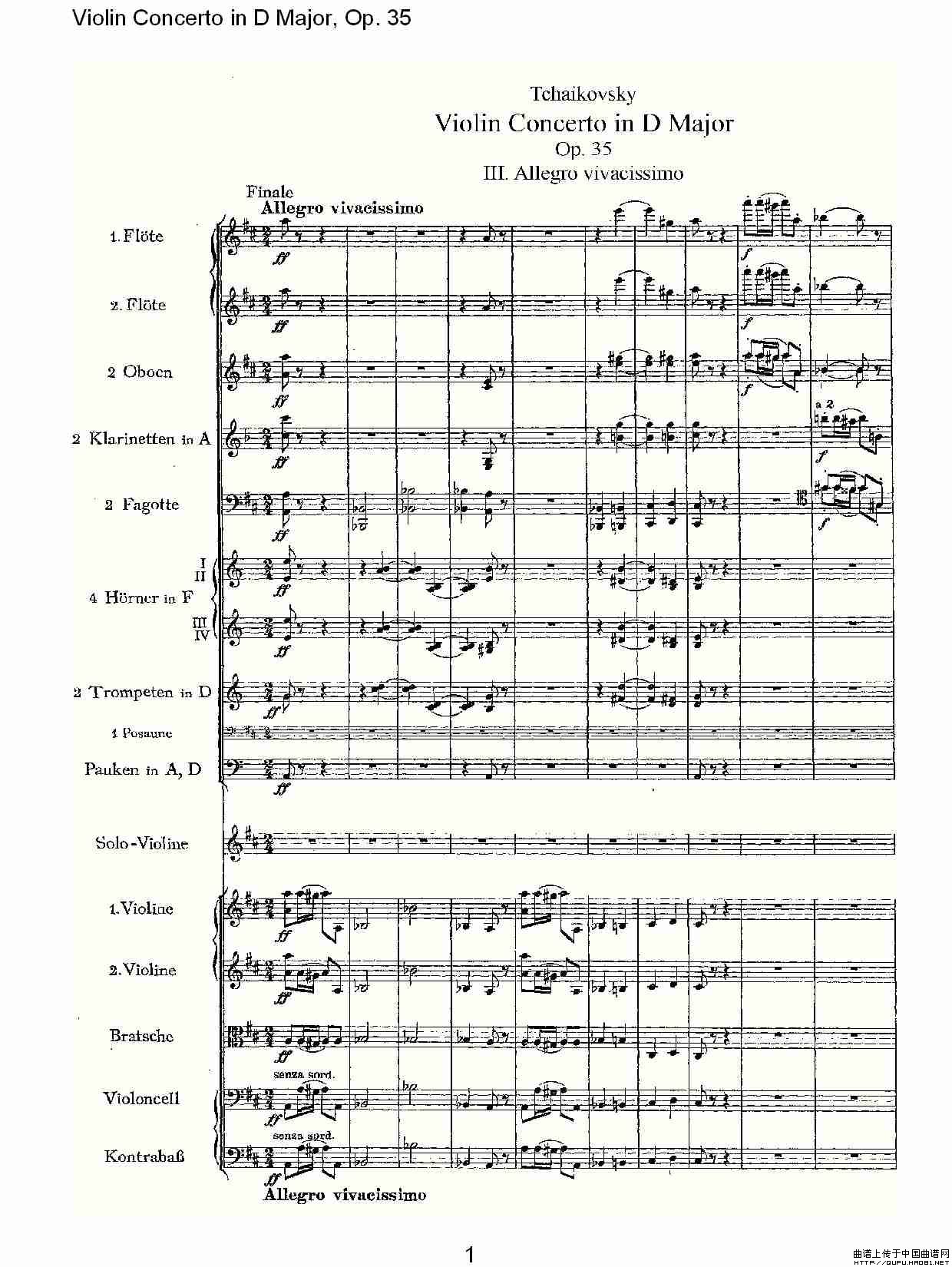 D大调小提琴协奏曲, Op.35第三乐章(一)相关五线谱