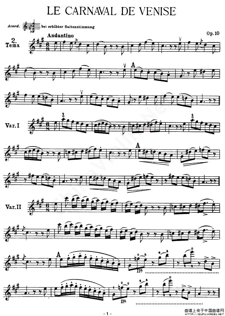 LE CARNAVAL DE VENISE相关五线谱
