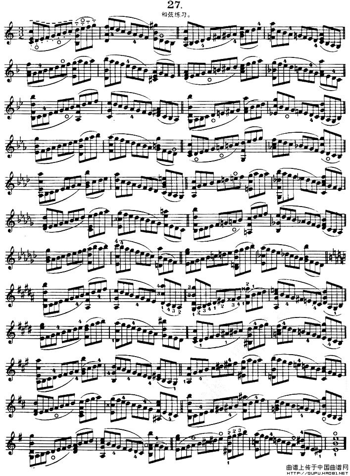 《舍夫契克》左手技巧练习第27课相关五线谱