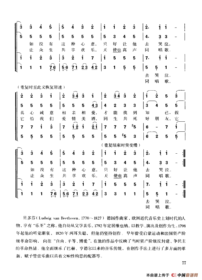 - 欢乐颂(贝多芬《第九交响曲》主题)(线简谱混排版)