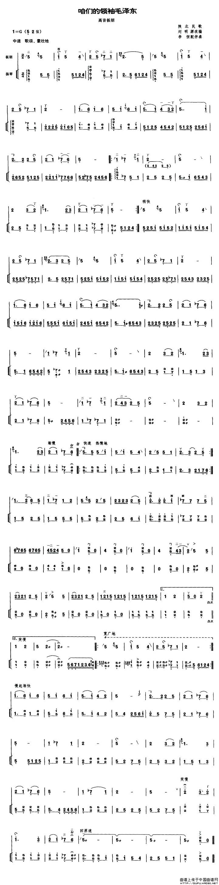 咱们的领袖毛泽东(高音板胡、扬琴伴奏谱)相关五线谱