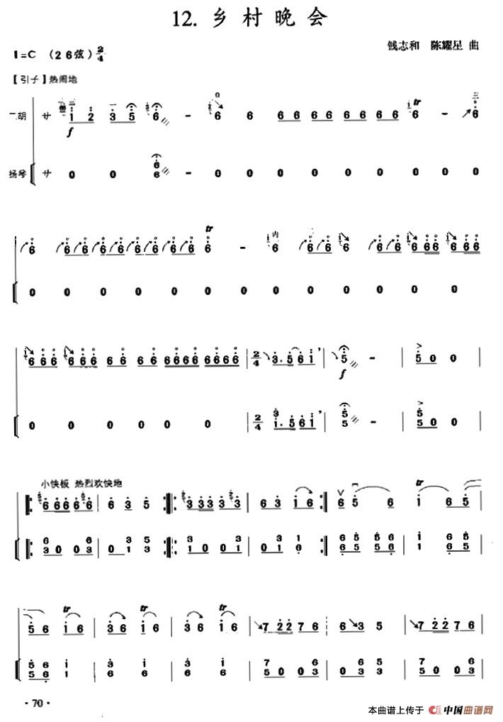 乡村晚会(扬琴伴奏谱)相关五线谱