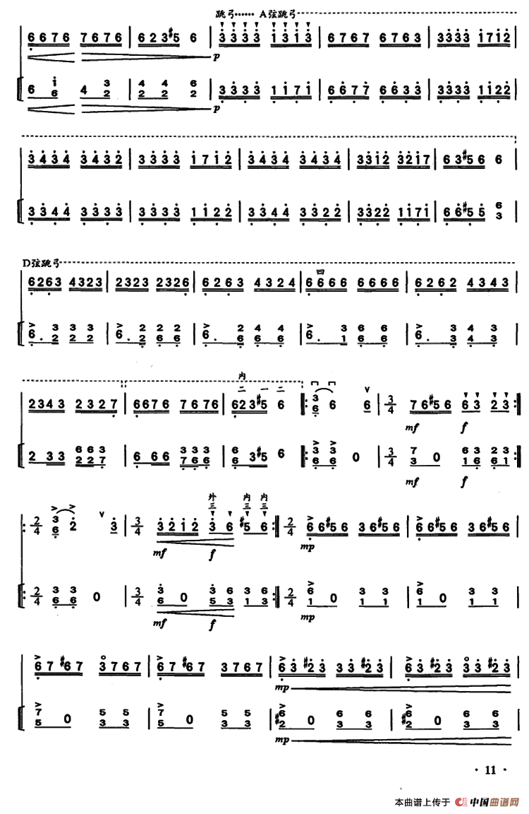 长城随想一、关山(二胡协奏曲主旋律谱)