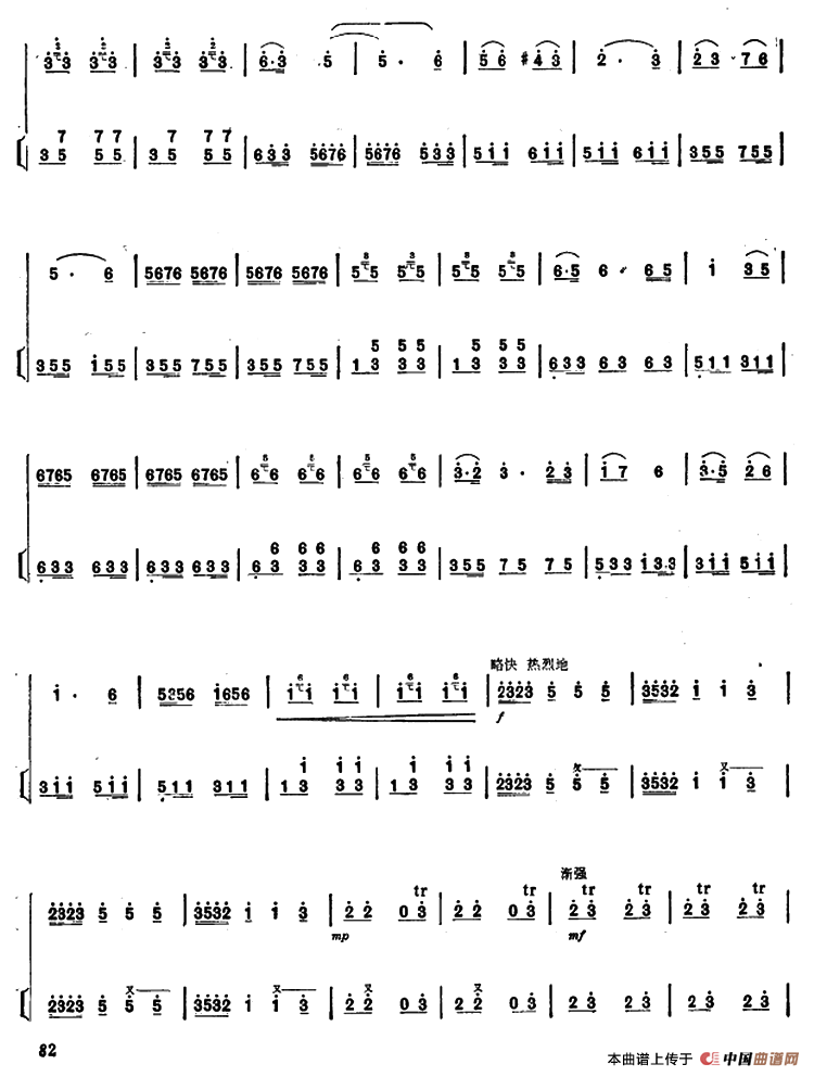 沿着社会主义大道奔前方(二胡+扬琴伴奏)相关五线谱