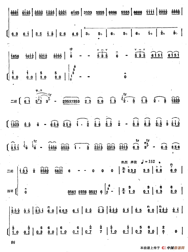 草原民兵(二胡独奏+扬琴伴奏)相关五线谱
