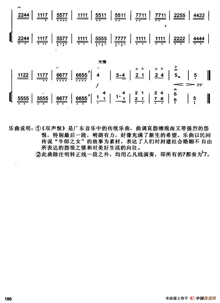 双声恨(高胡独奏+扬琴伴奏)相关五线谱
