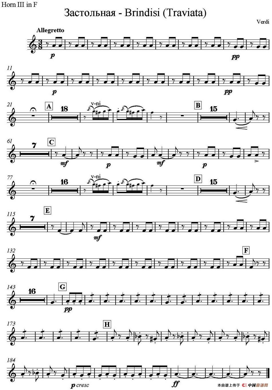 Brindisi(Traviata) 饮酒歌(管弦乐)(圆号分谱)相关五线谱