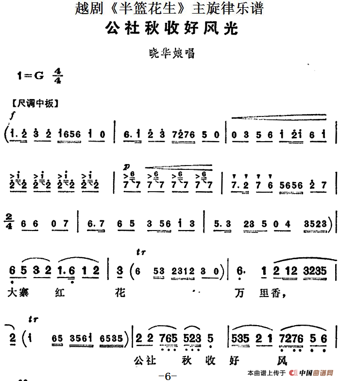 越剧《半篮花生》全剧主旋律乐谱:公社秋收好风光(P6-7)相关五线谱