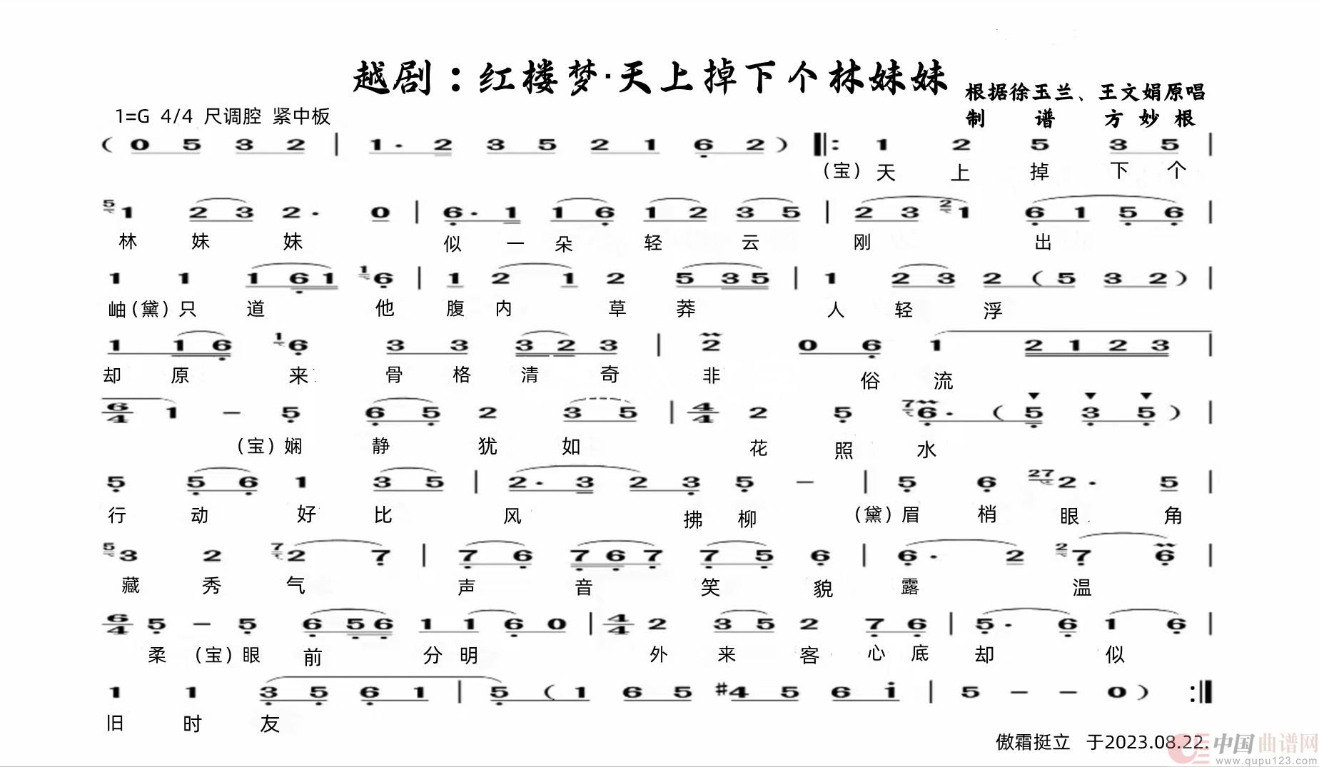 越剧:红楼梦&天上掉下个林妹妹相关五线谱