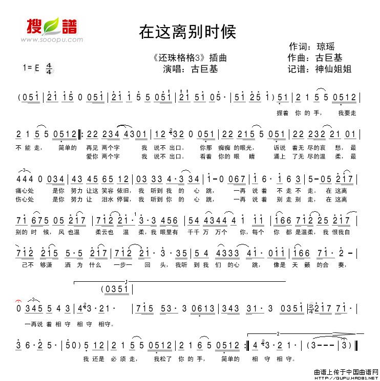 在这离别时候相关五线谱