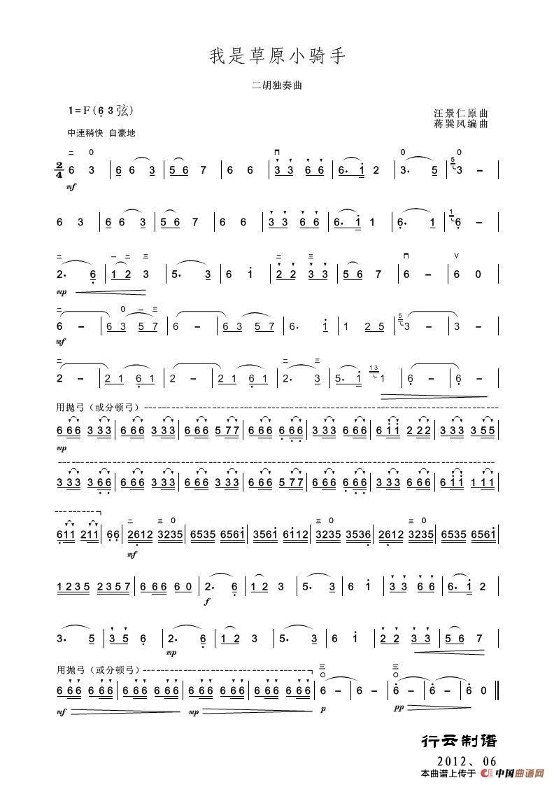 我是草原小骑手(二胡独奏曲)相关五线谱