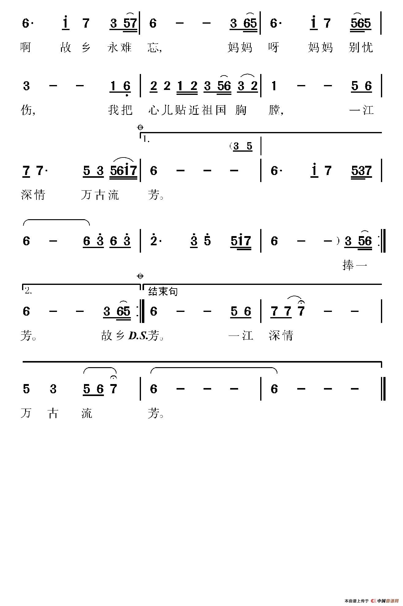 一江深情(电影《汉水丹心》主题曲)相关五线谱