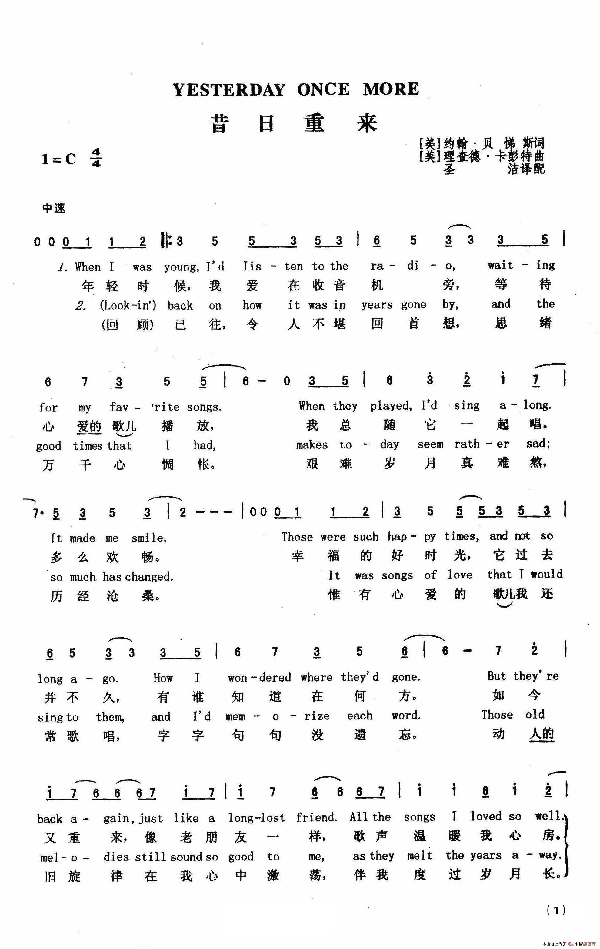 Yesterday Once More(昔日重来)(贝司谱)