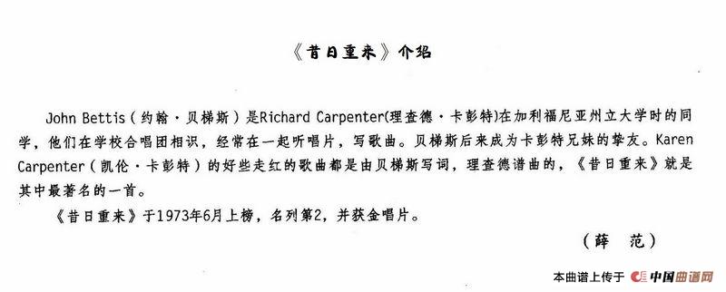 [美]昔日重来相关五线谱