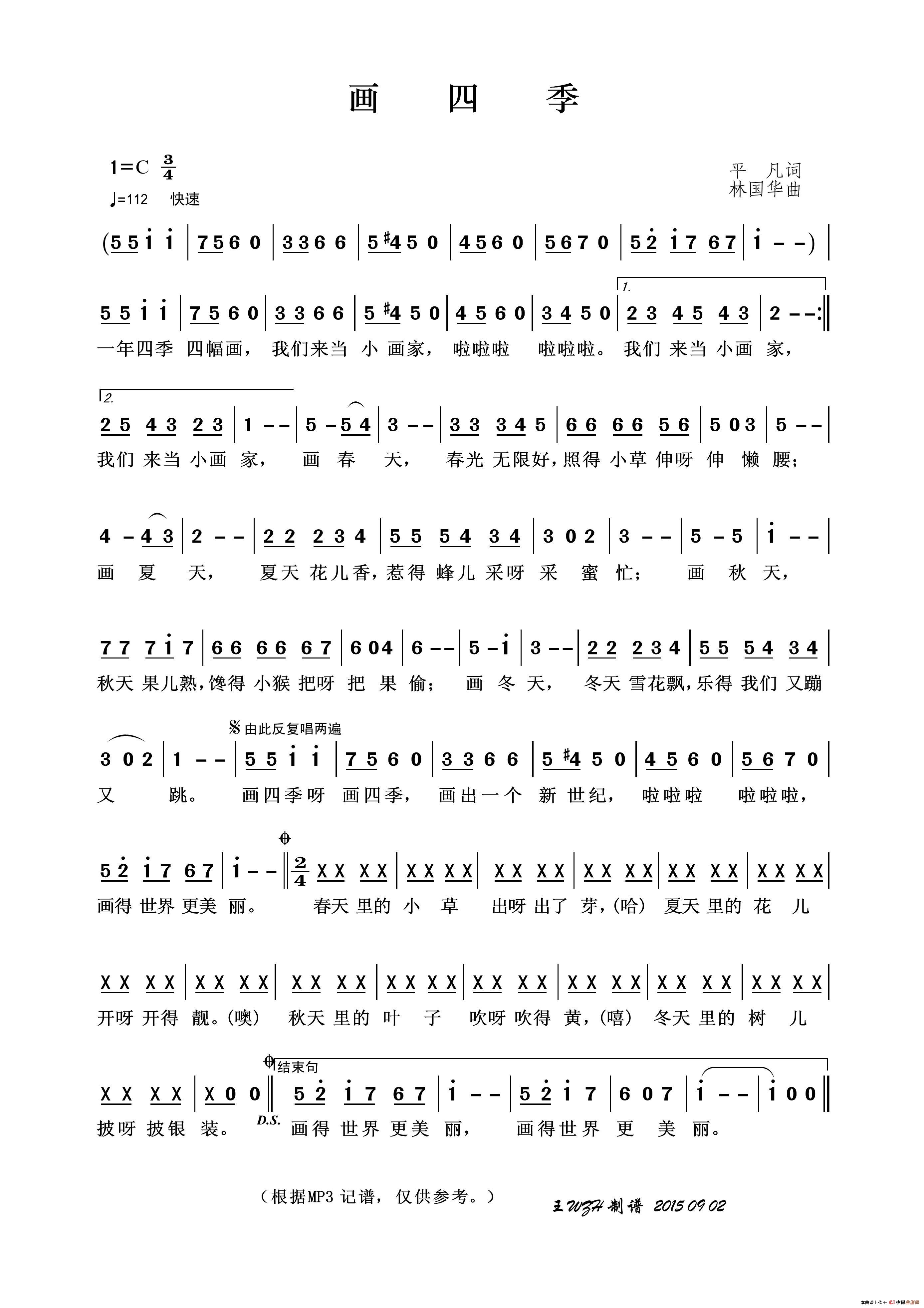 林国华曲谱推荐你还记得吗(李昌明词 林国华曲)大雪(同名话剧主题歌)等我(电视剧《弃卒》主题歌)什么也别说(电影《我要你爱我》插曲二)风雨中撑起一把伞(电视剧《信访局长》主题歌)开心一笑(电视剧《荣河镇的男人们》片头曲)创新中国(张枚同词 林国华曲)半世沧桑农民兄弟(贾铮词 林国华曲)炼钢的哥哥回来了相思月亮(女童声、男美声对唱)祖国我悄悄对你说百味人生(电视剧《徽骆驼》主题曲)那一天(电影《我要你爱我》插曲)真情永久(施季强词 林国华曲)送你一枚西沙螺(郑南词 林国华曲、正谱)向往(电视剧《九九》主题曲)炼钢的哥哥回来啦这个城市有爱最美丽的女人(电视剧《九九》插曲)