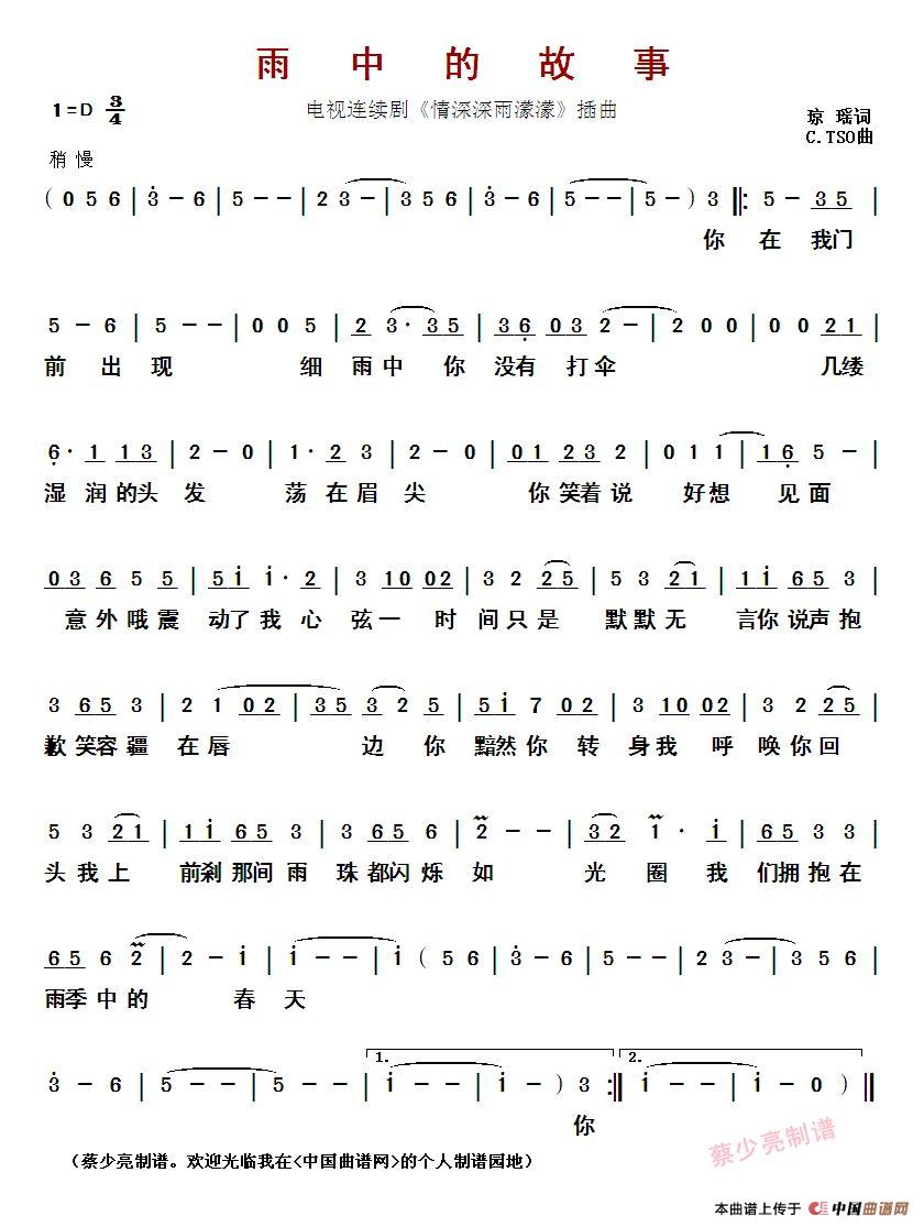 雨中的故事(电视连续剧《情深深雨濛濛》插曲)相关五线谱