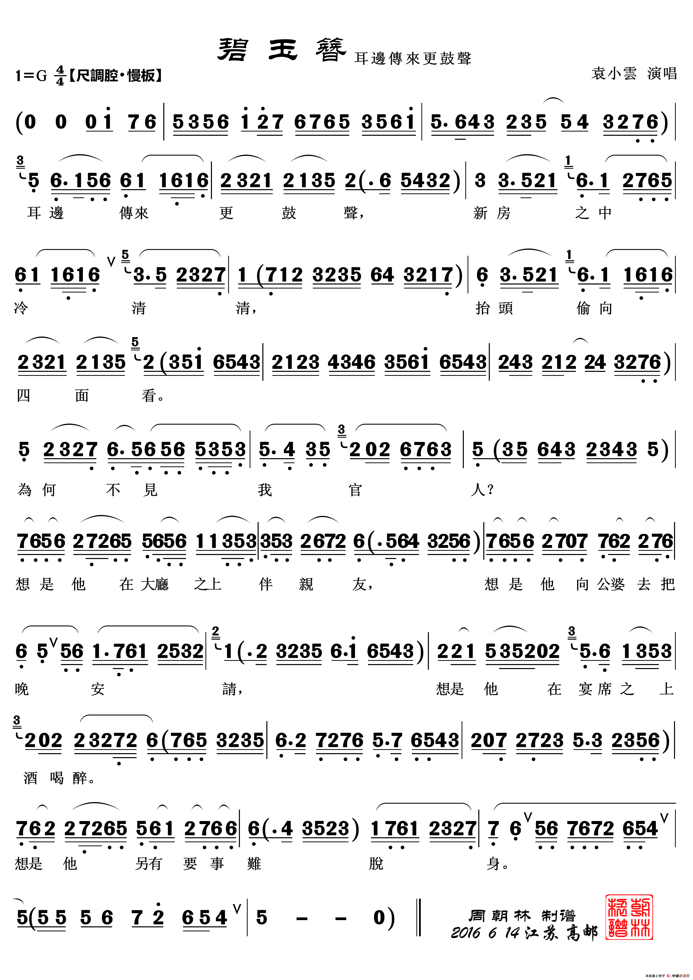 谯楼打罢二更鼓(越剧《碧玉簪》唱段2首)相关五线谱