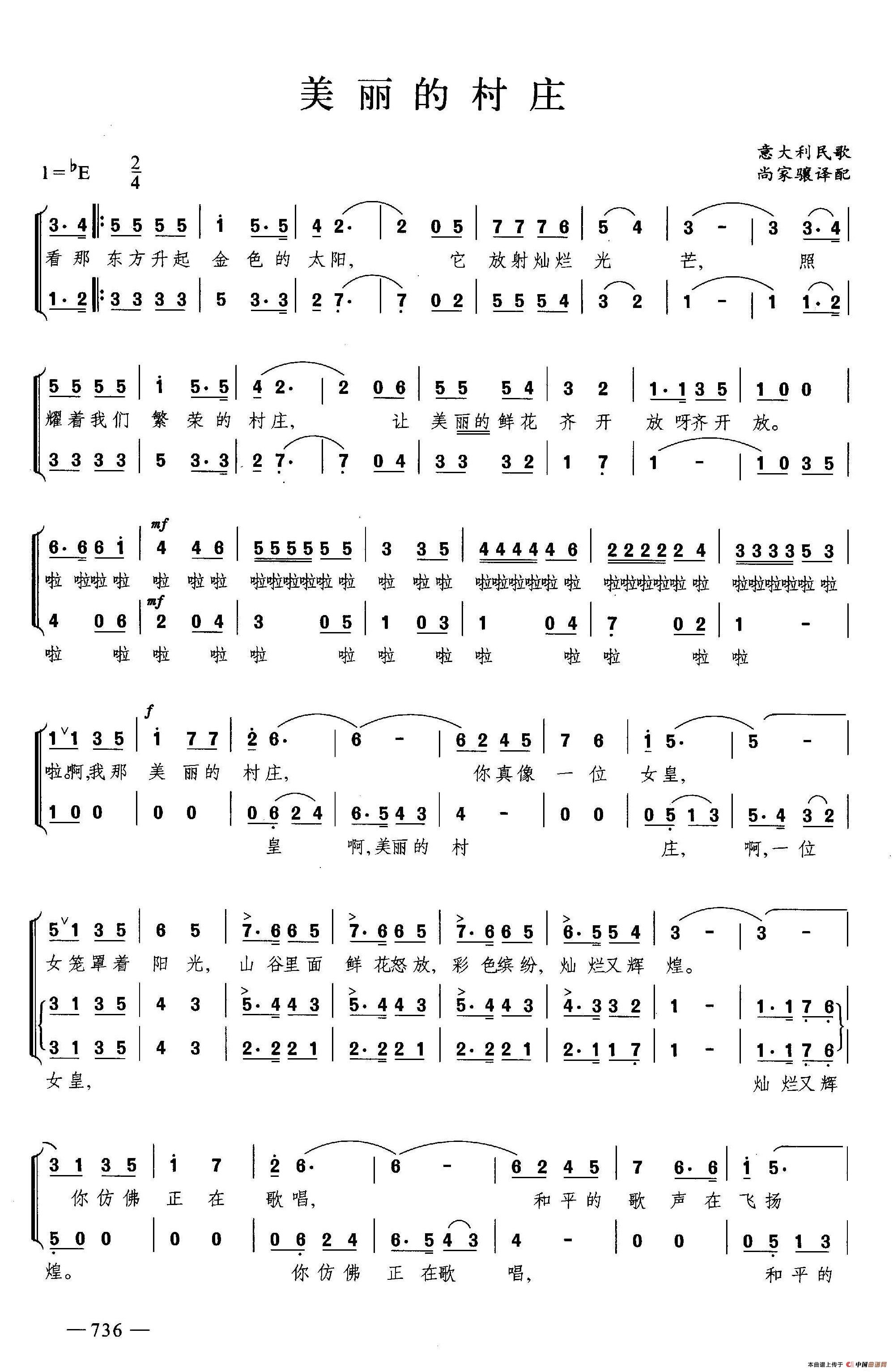 美丽的村庄(合唱)相关五线谱