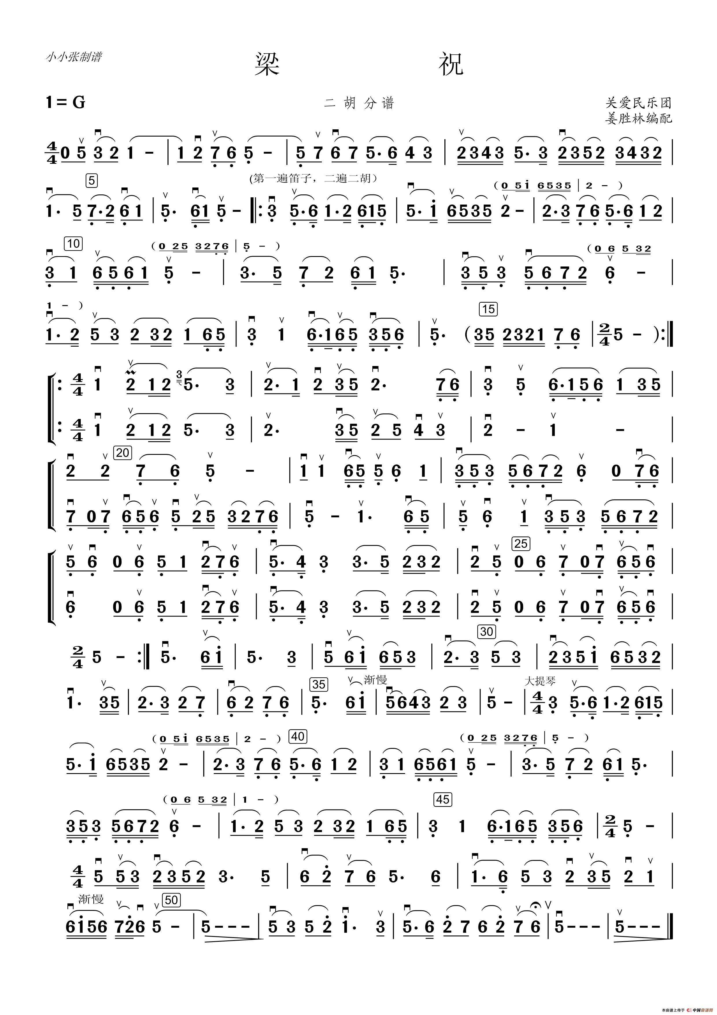 梁祝(二胡分谱)(关爱民乐团版)