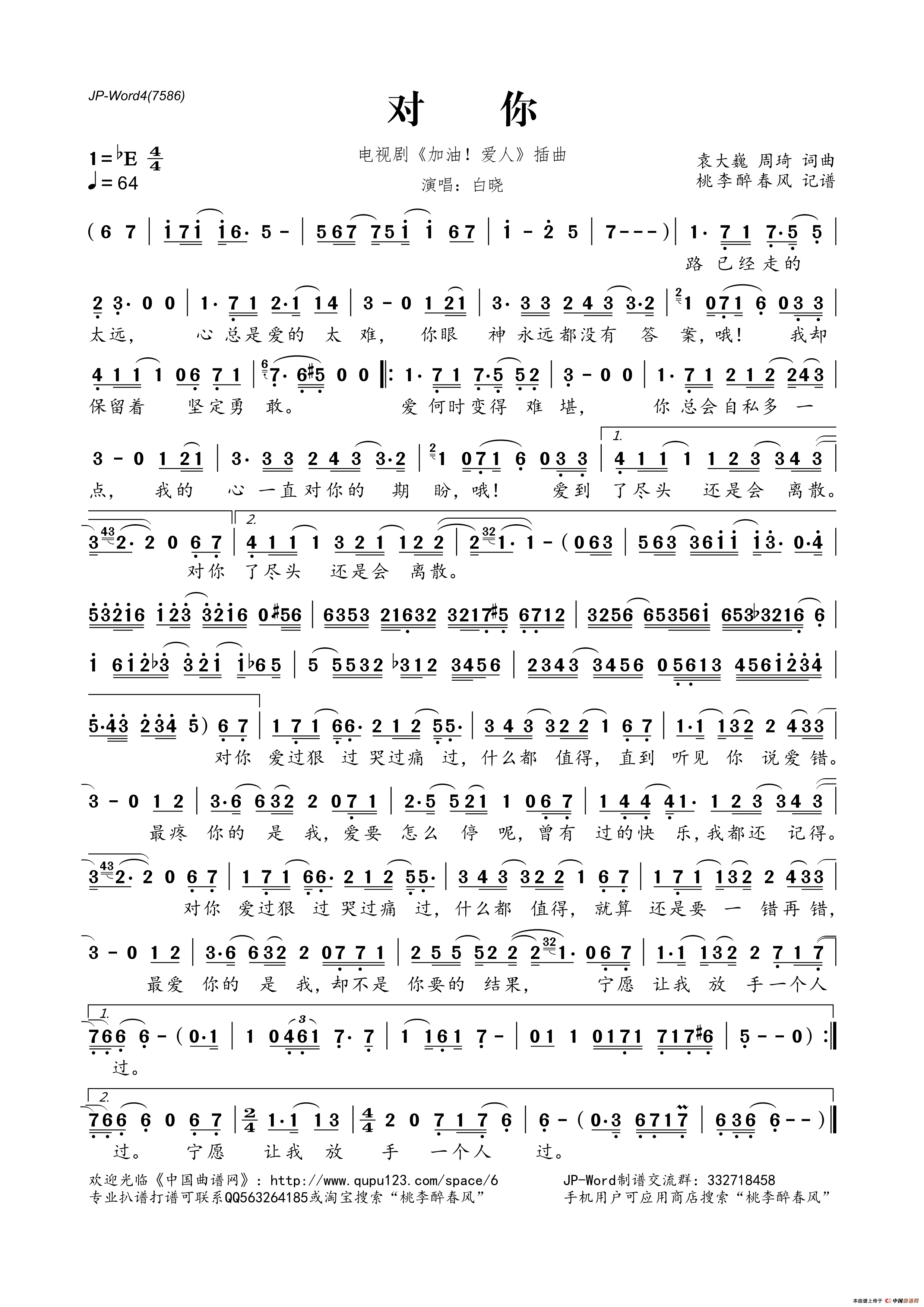 对你(电视剧《加油!爱人》插曲)相关五线谱