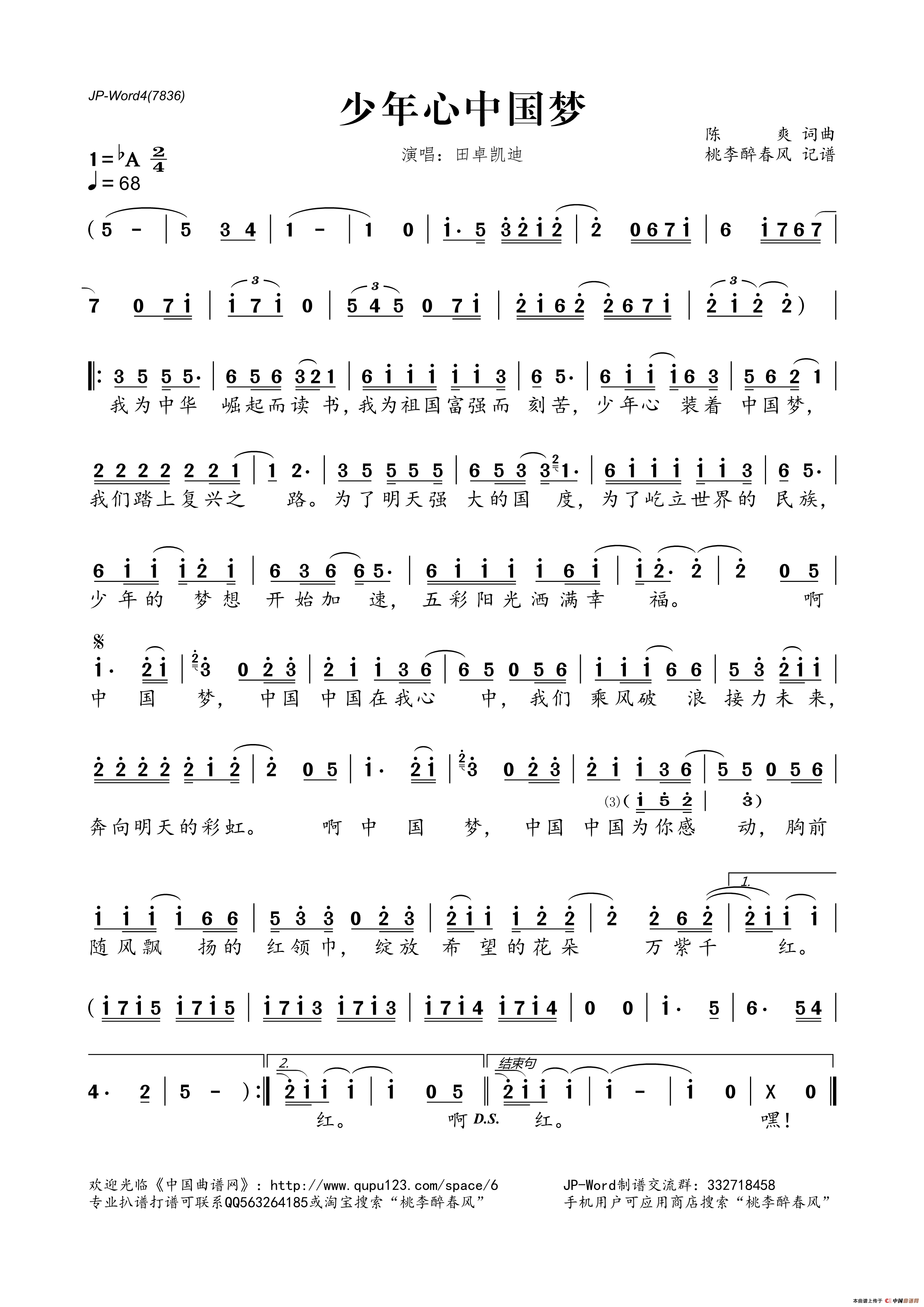 少年心中国梦相关五线谱