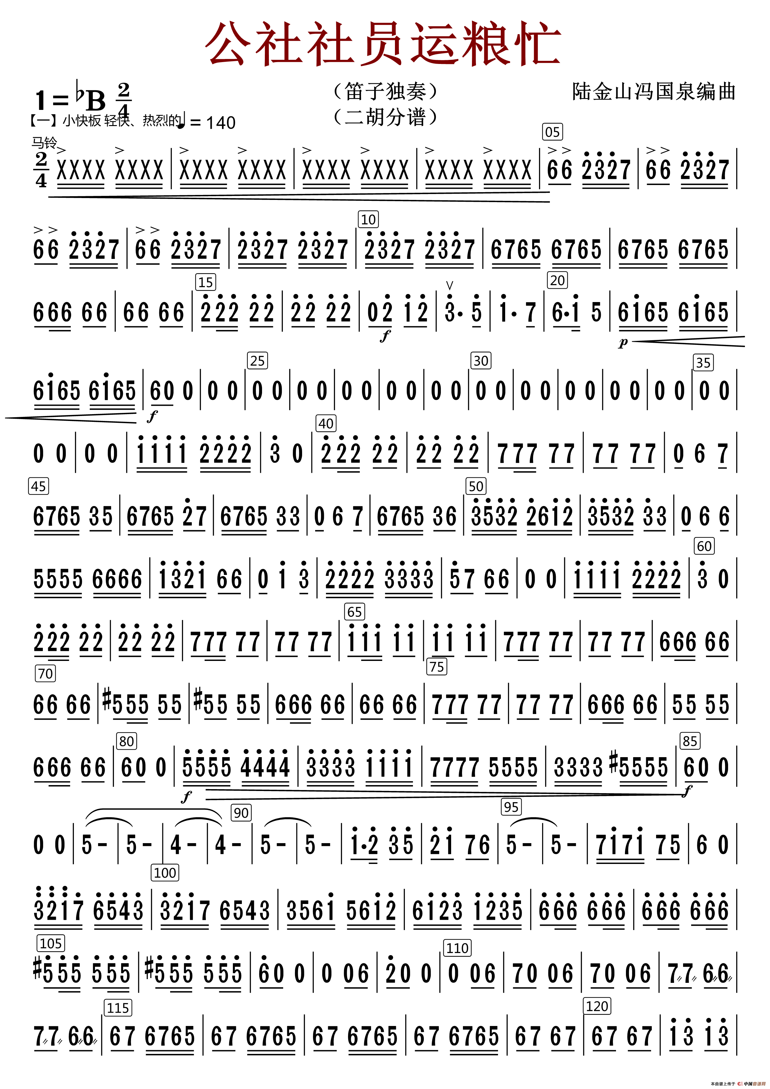 公社社员运粮忙(笛子分谱)