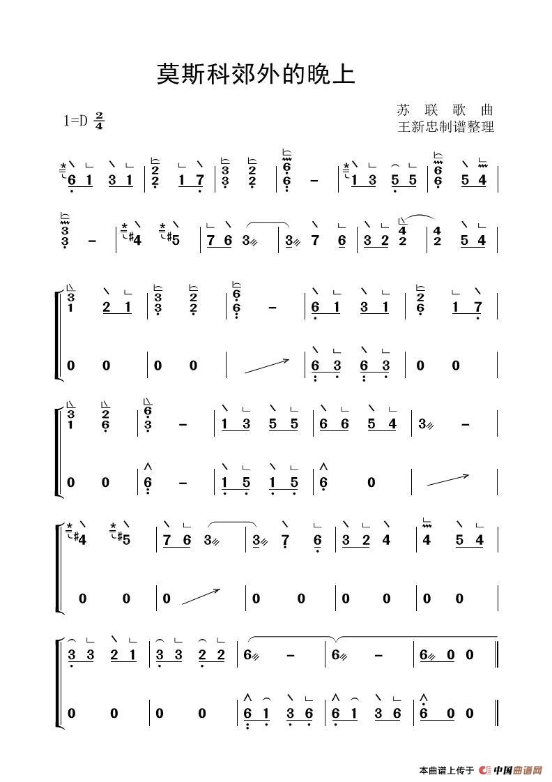 莫斯科郊外的晚上(古筝大字谱)相关五线谱