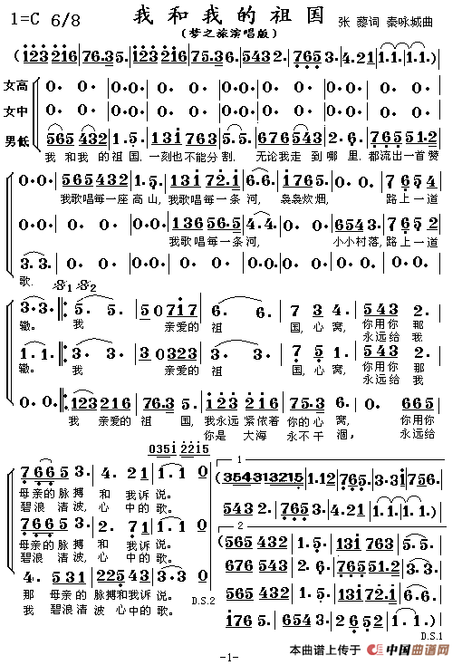 我和我的祖国(梦之旅合唱版)相关五线谱