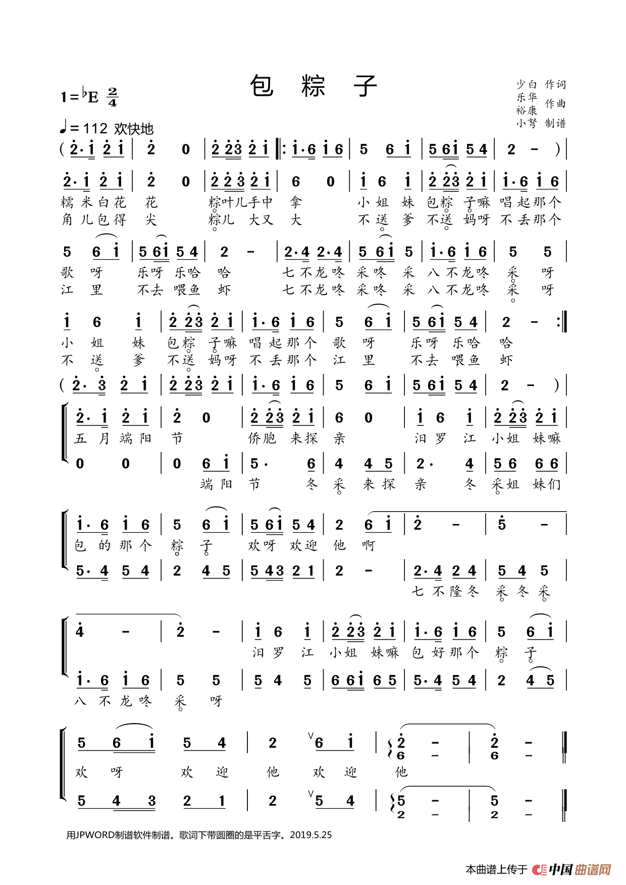包粽子相关五线谱