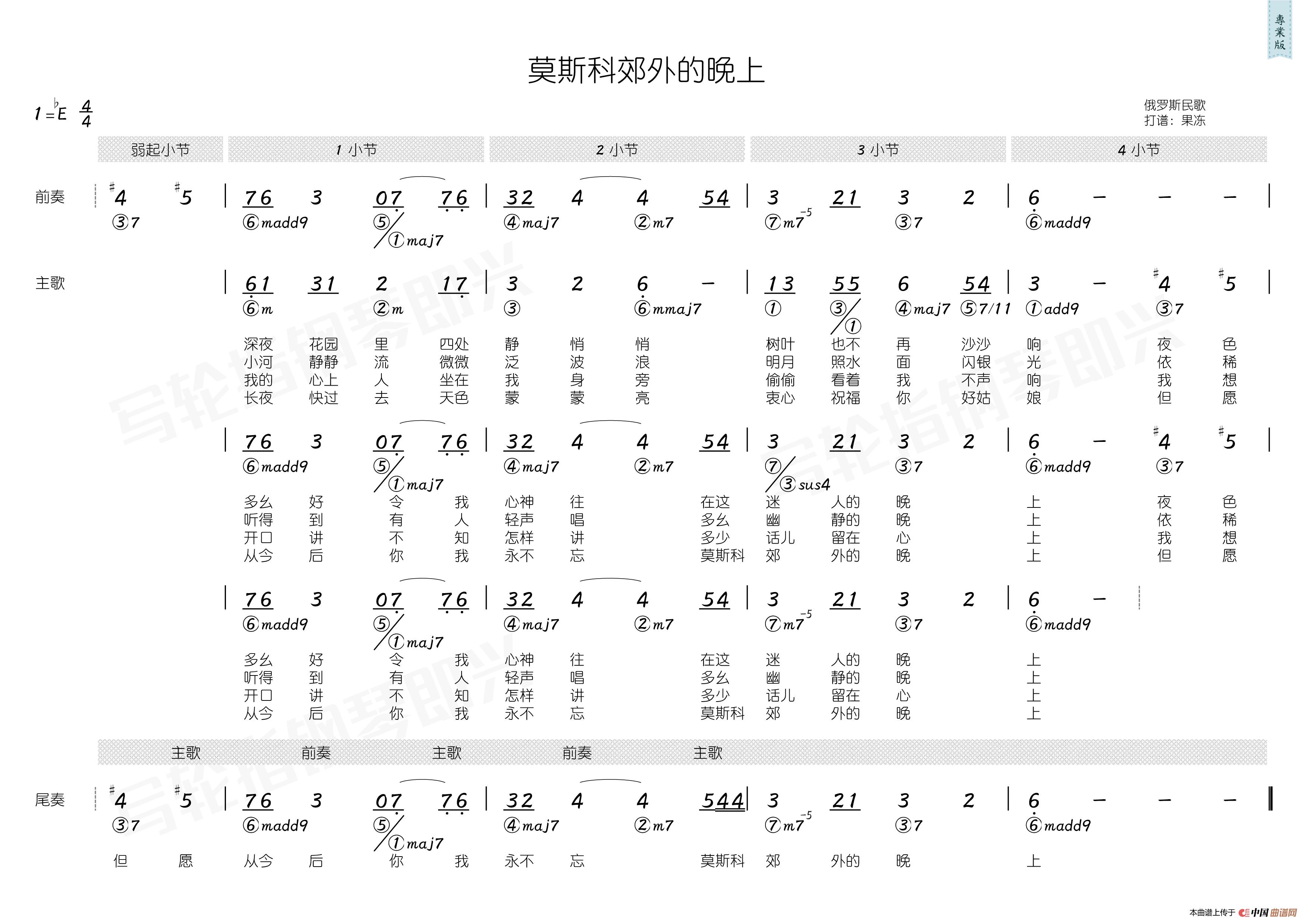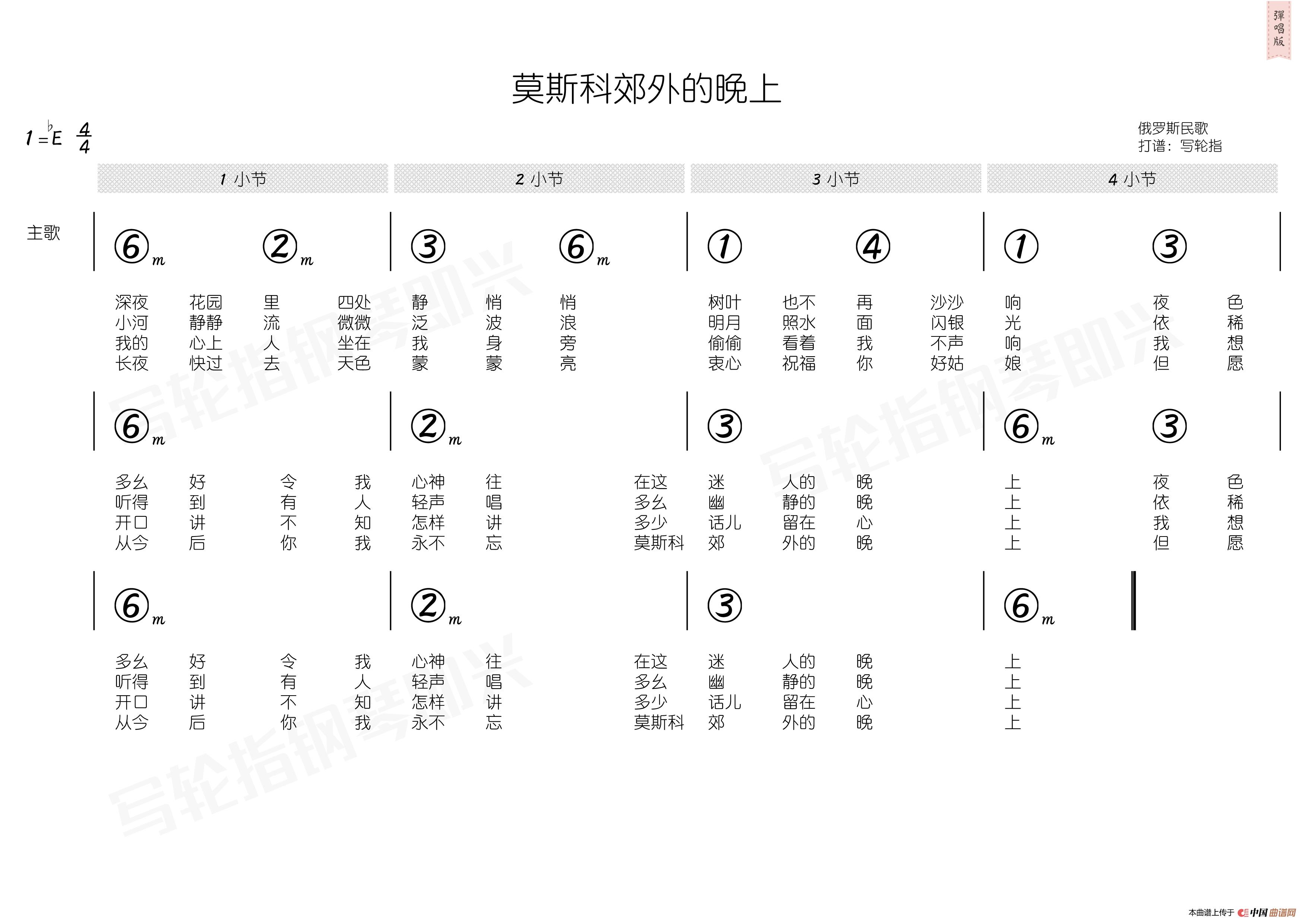 群星曲谱推荐粉刷匠(简和谱)雪绒花(简和谱)铃儿响叮当(简和谱)彩云追月(简和谱)我的大中华(杨涛 裴正词曲)绿袖子(简和谱)茉莉花(简和谱)永不分开 世界的爱优美的小调(简和谱)我和星星打电话(简和谱)舒克和贝塔(简和谱)七色光(简和谱)一二三四五(简和谱)三套车(简和谱)每当我走过老师窗前(简和谱)边坝路上