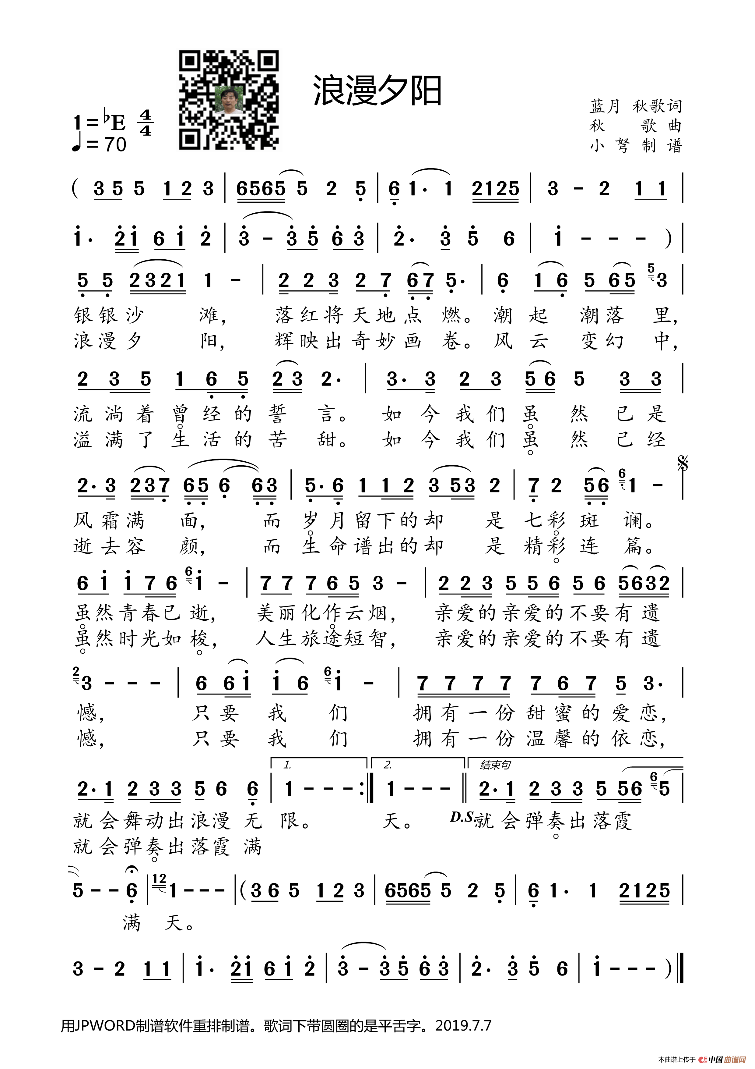 浪漫夕阳相关五线谱