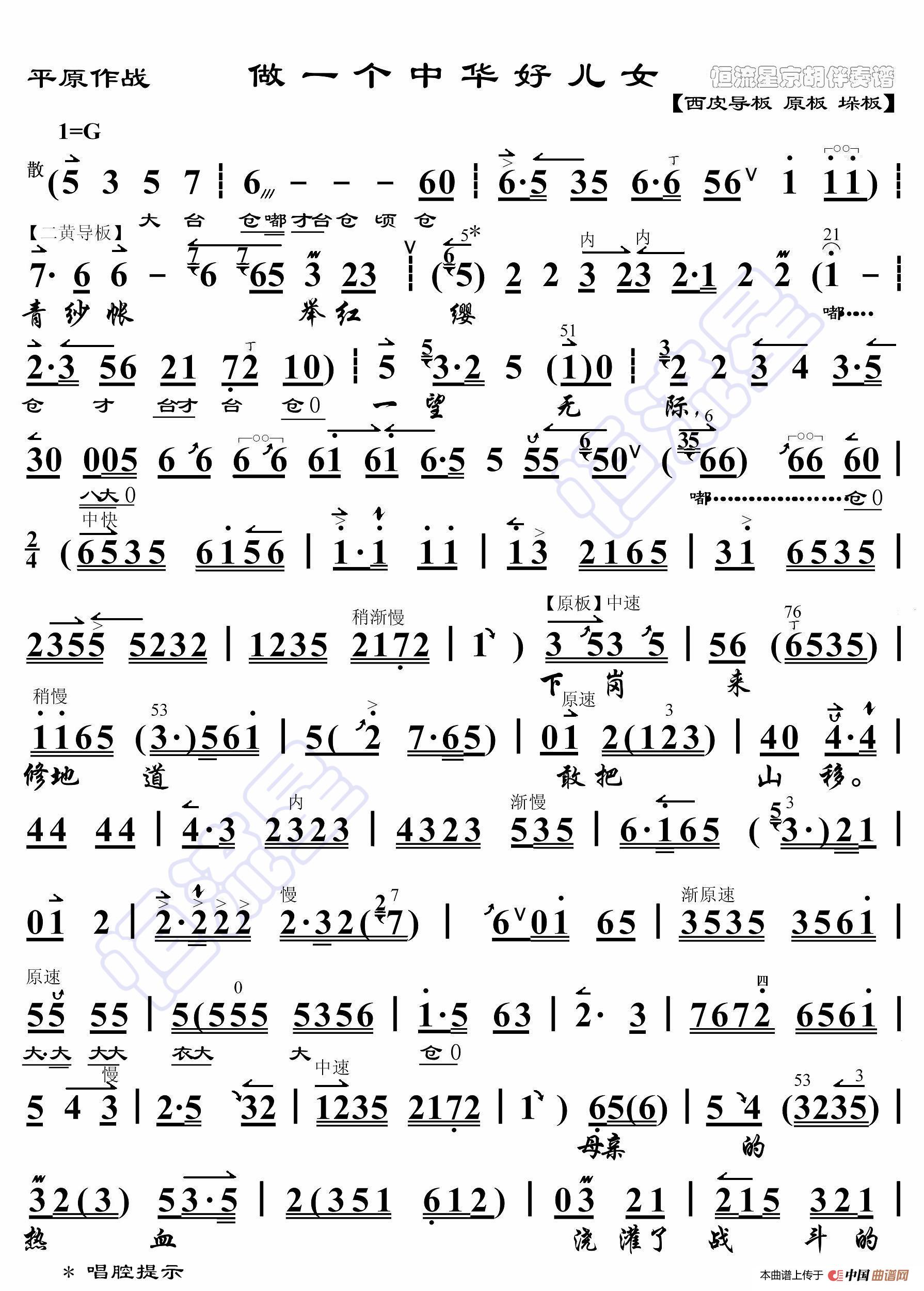 - 毛主席诗词·蝶恋花·答李淑一(京胡伴奏谱)