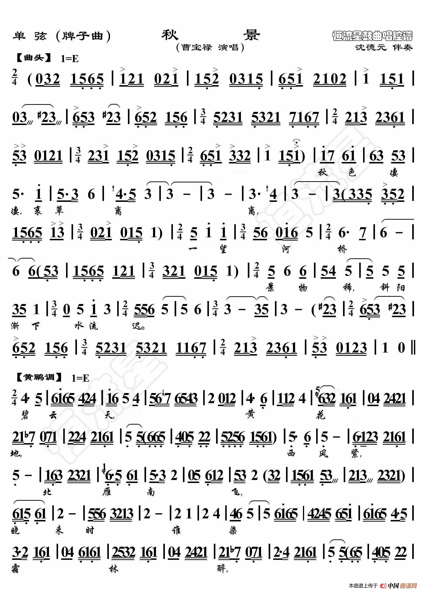 - 描容上路·叫一声五娘且慢行(京胡伴奏谱)