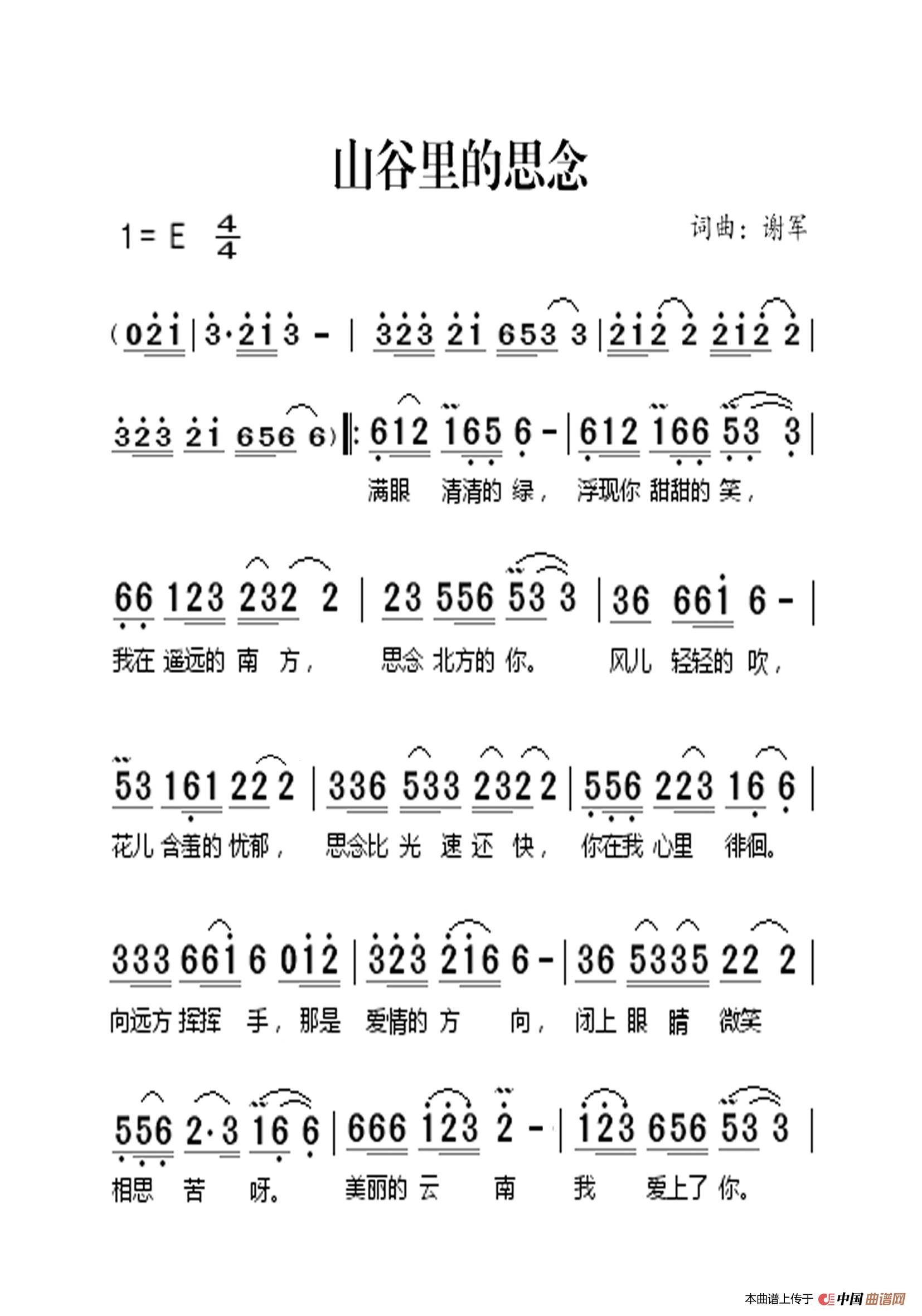 谢军曲谱推荐最爱的人(谢军词曲)做你的爱人人生(电视连续剧《海灯法师》插曲)芒果香山谷里的思念(伴奏谱)碎心石阿哥阿妹山谷里的思念做你的爱人那一夜把你藏在怀里碎心石人生(电视剧《海灯法师》插曲)恋采依山谷里的思念山谷里的思念(小锐二胡演奏)美丽的岳阳槐花香(刘基生词 谢军曲)山谷里的思念做你的爱人