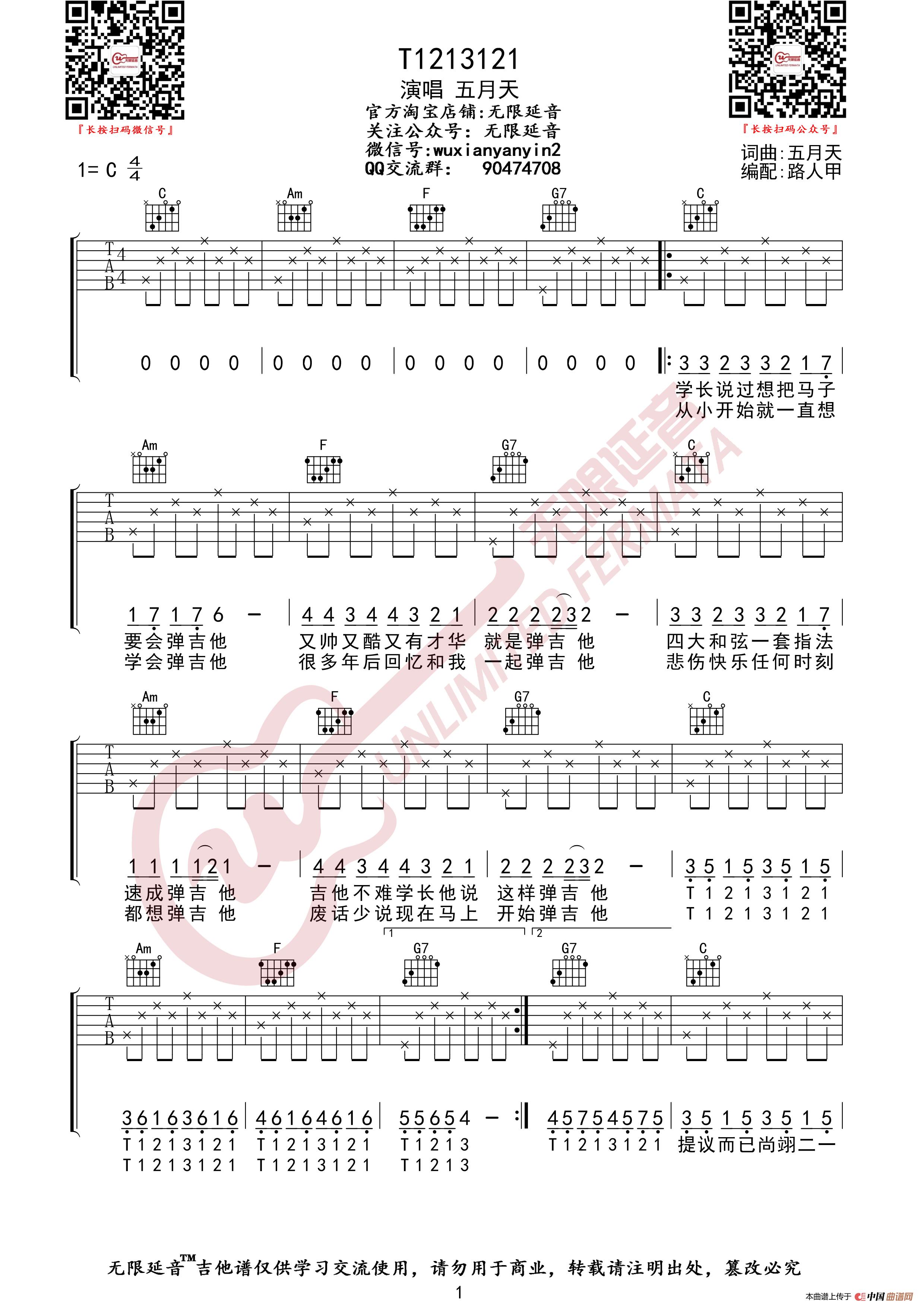 五月天 T1213121 吉他谱(无限延音编配)相关五线谱