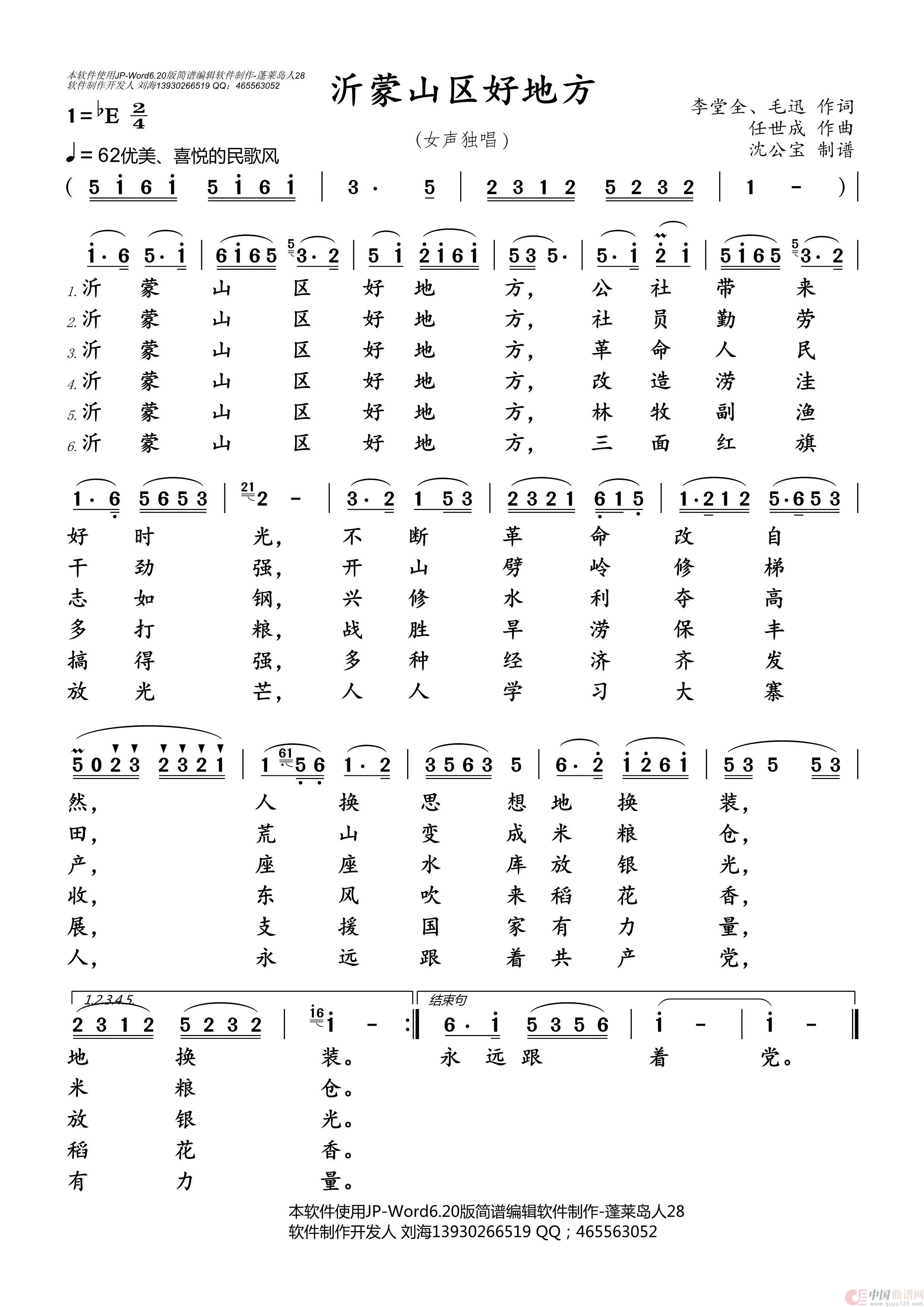 沂蒙山区好地方相关五线谱