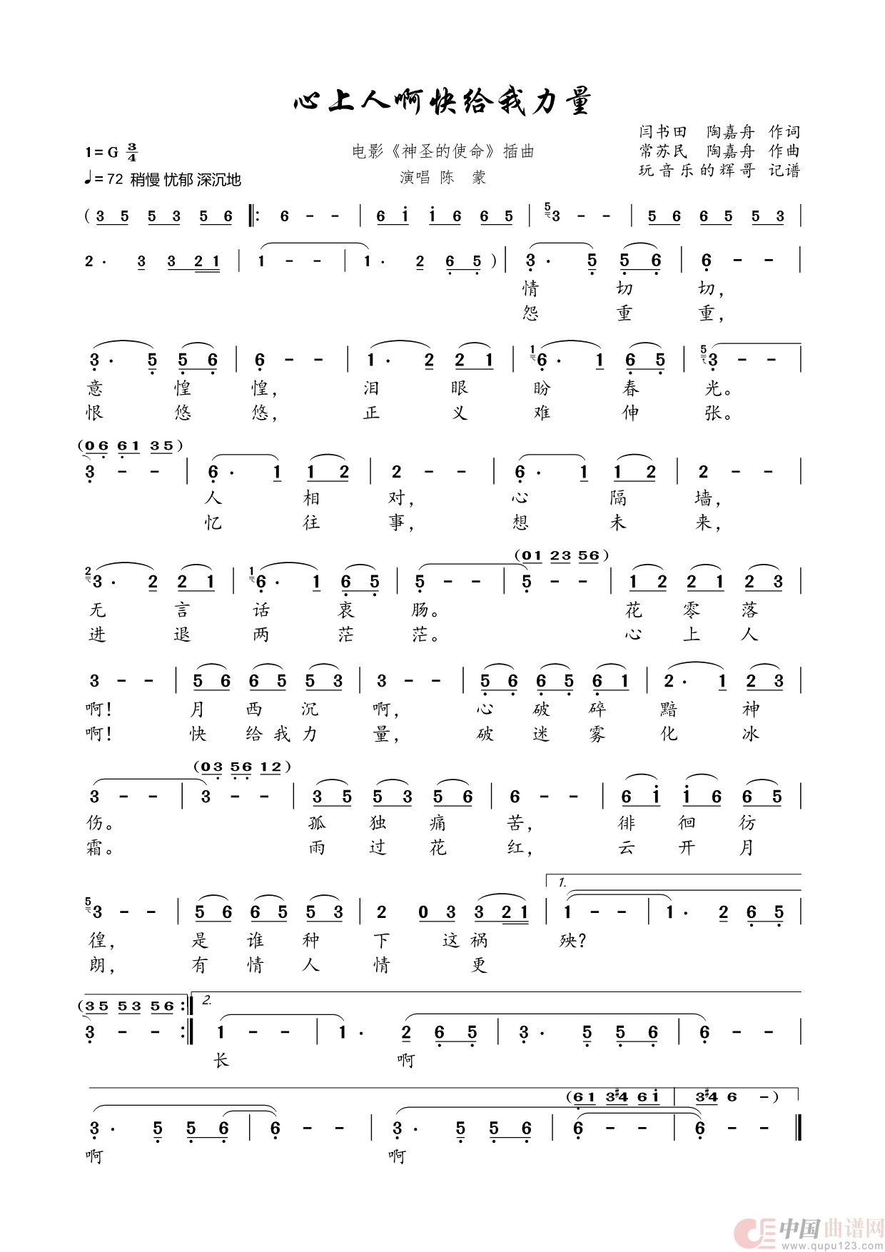 心上人啊快给我力量相关五线谱