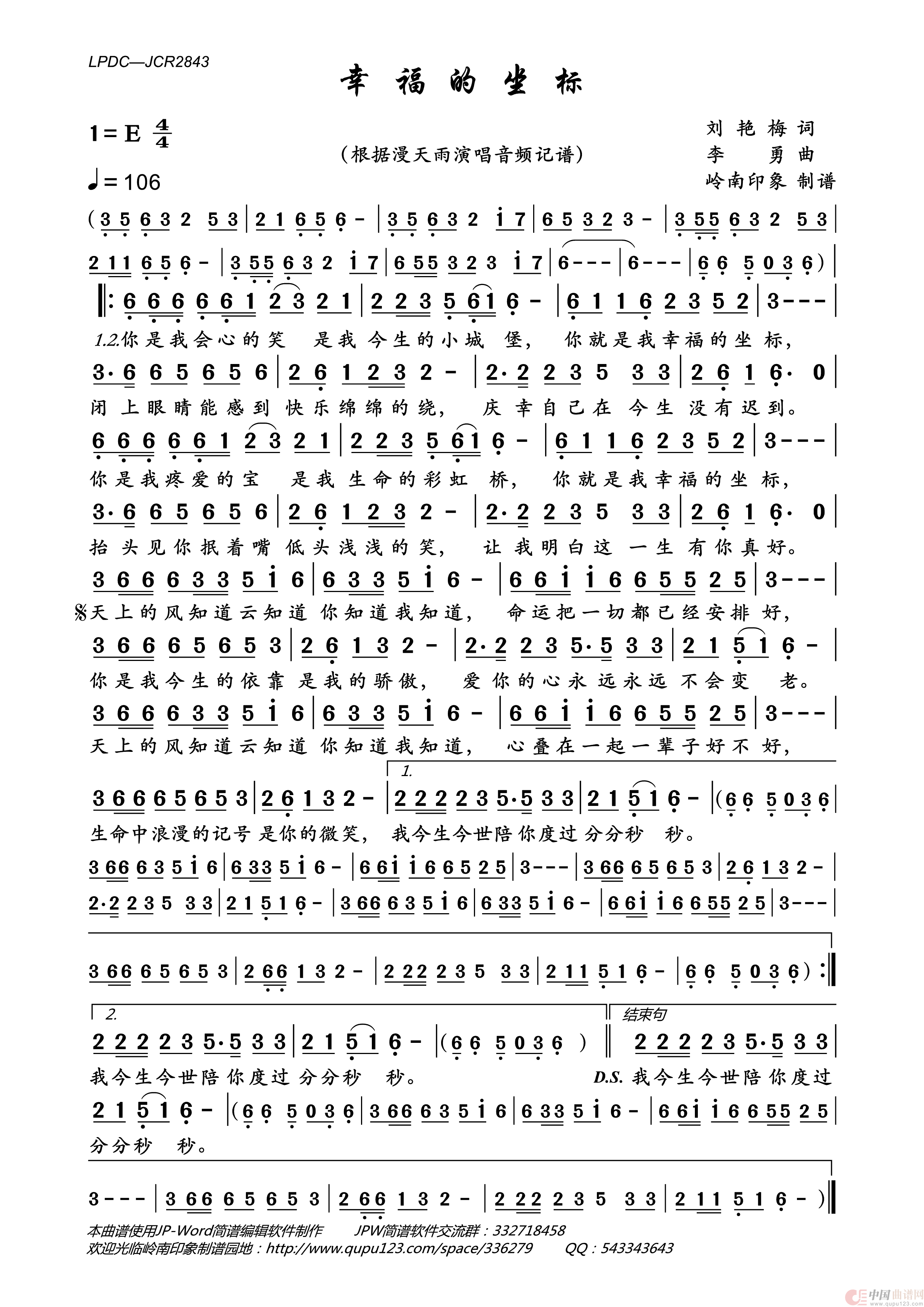 李勇曲谱推荐累了也想喝点酒谁的心在午夜漂泊爱让我着了火醉了红尘醉了心相思的眼泪(小淳词 李勇曲)生活赐的这杯酒夜来香小夜曲(符小凌词 李勇曲)人生一去不复返今生还有我来陪究竟是为什么(雨中百合)知荣辱 树新风八十一难七十二变(王爱华)说老不老说小不小人生取舍两难全人生没有回头路既然你要走我也会放手这个世界誰把我在乎我和春天有个约会(张培莺词 李勇曲)心态要洒脱漫漫人生路(徐晓岚、三 力、李勇军词李勇军、三 力、徐晓岚曲)
