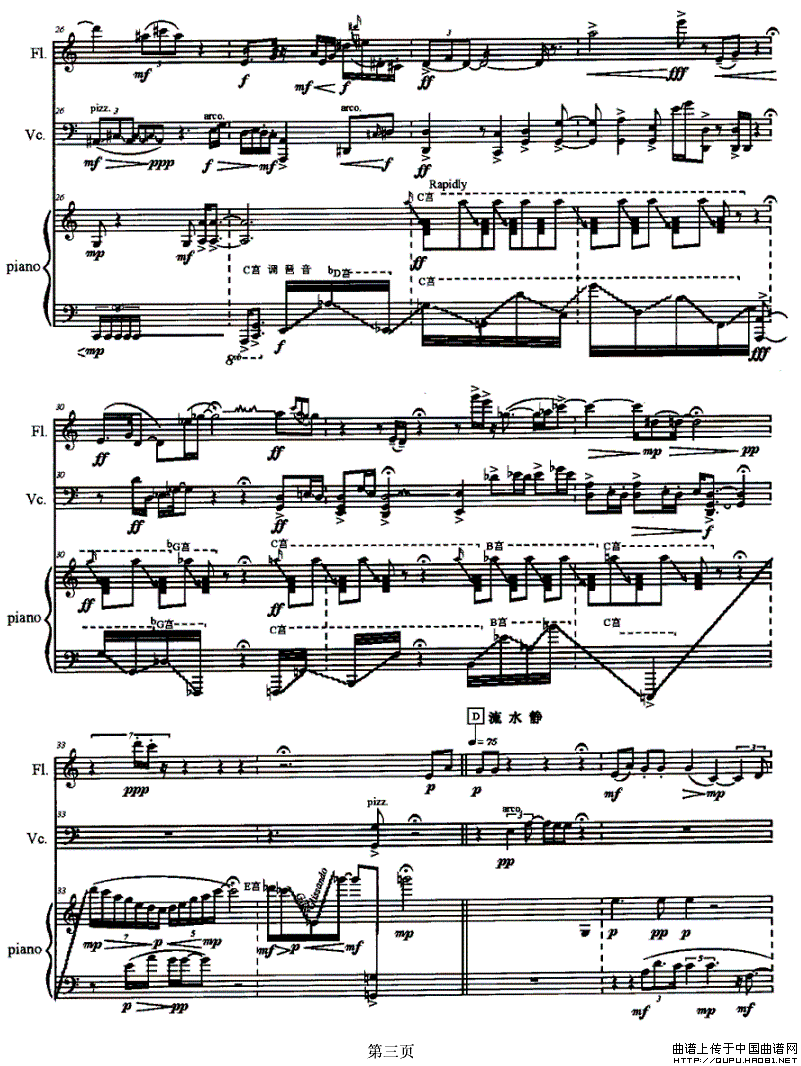 《夜凉风幽》之《幽香》(长笛+大提琴+钢琴)相关五线谱