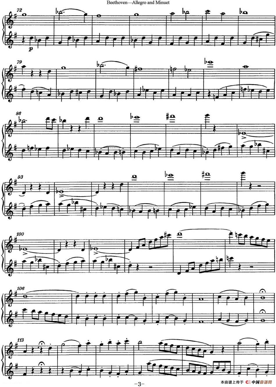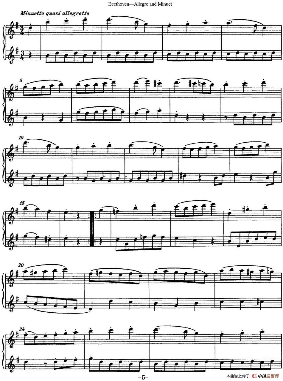 贝多芬快板及小步舞曲二重奏相关五线谱