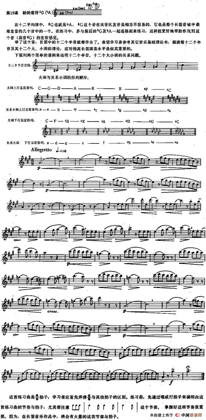 长笛练习曲100课之第19课 (新的音符#G(bA))相关五线谱