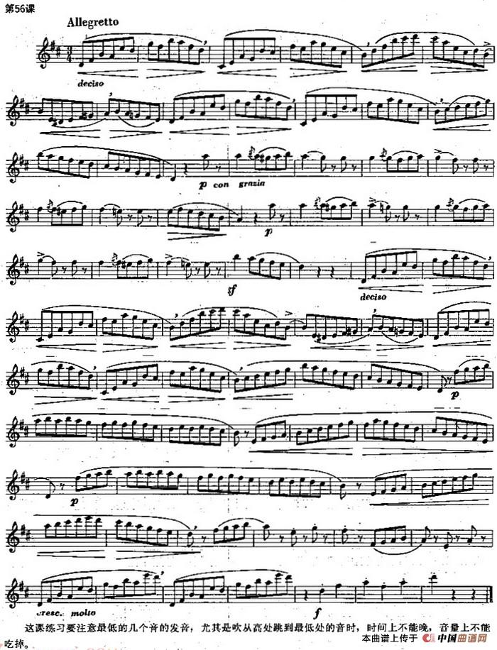 长笛练习曲100课之第56课 (最低的几个音的发音)相关五线谱