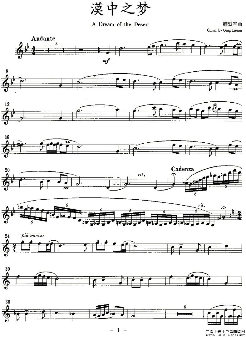漠中之梦(单簧管)相关五线谱