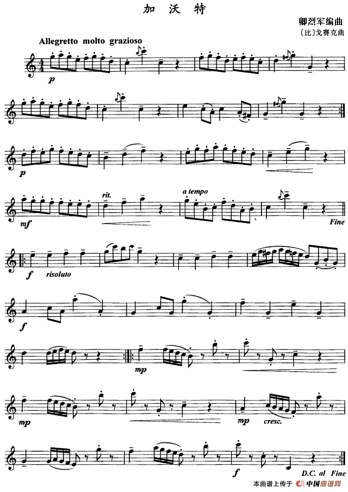 加沃特(单簧管)相关五线谱