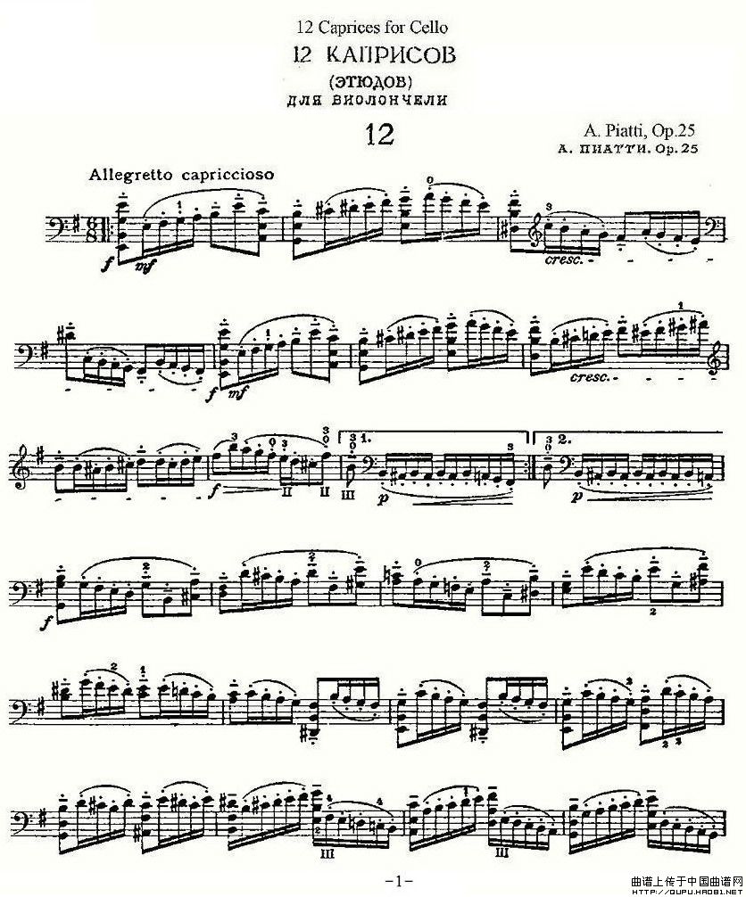 PIATTI 12 Caprices 之12(大提琴)相关五线谱