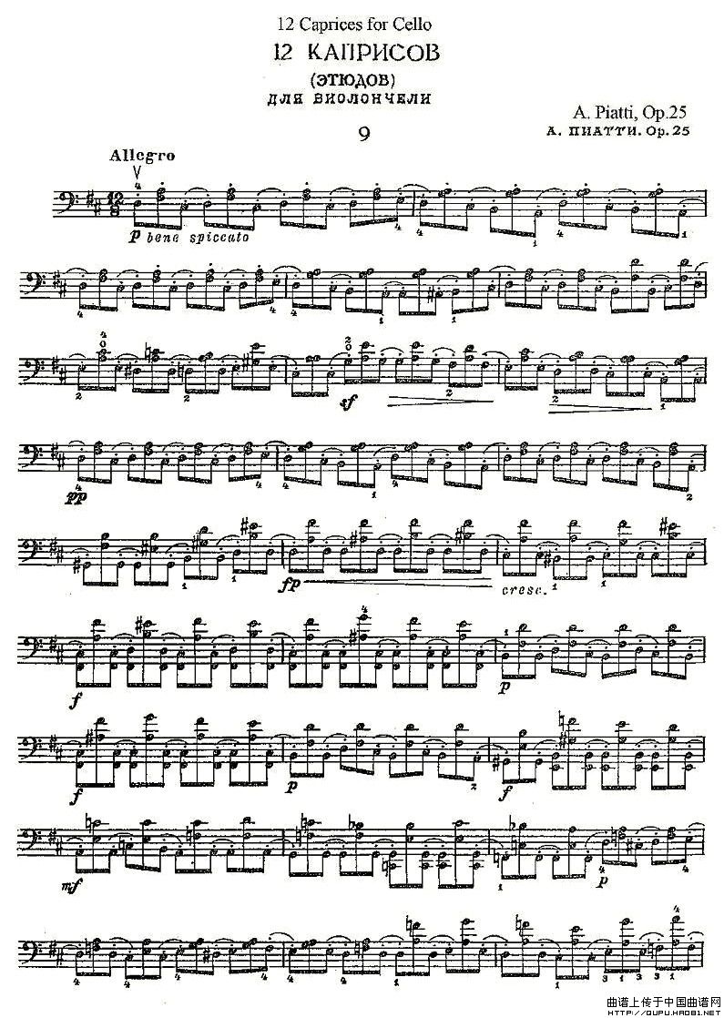 PIATTI 12 Caprices 之9(大提琴)相关五线谱