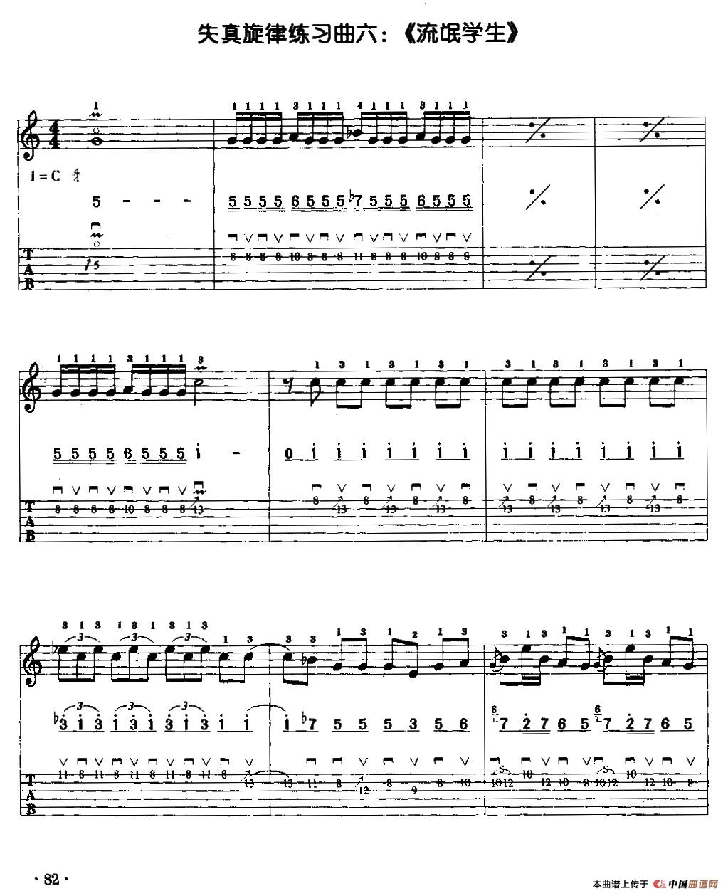电吉他失真旋律练习曲:流氓学生相关五线谱
